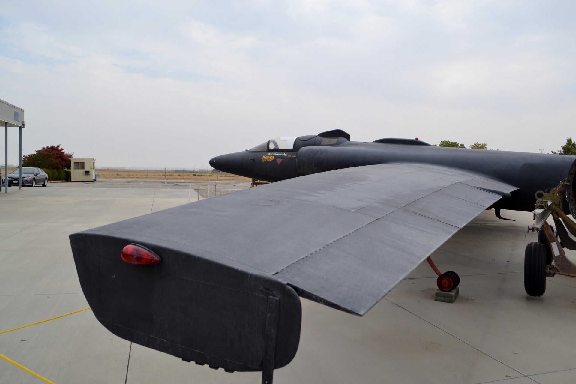 Next to Joe Davies Heritage Airpark lies Blackbird Airpark. Please be aware that these are two separate parks and have different owners and thus opening times. Blackbird Airpark is owned by the Edwards Flight Test Museum and houses and A-12, SR-71 and a rare short-nosed U-2 Dragonfly. Besides three aircraft the museum has a great collection of Blackbird relics like a wind tunnel test scale model of the SR-71 and the pilot flight suit.