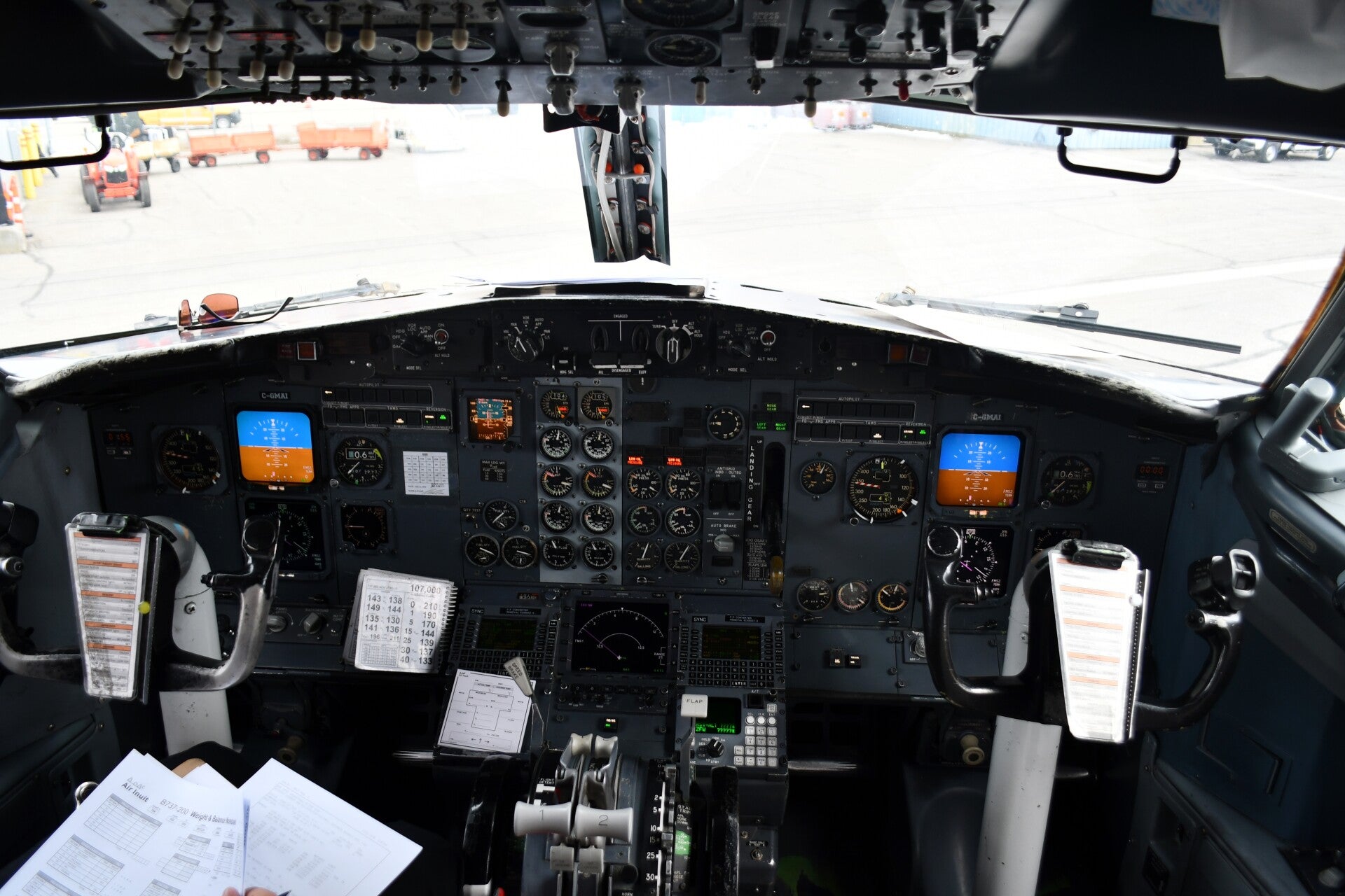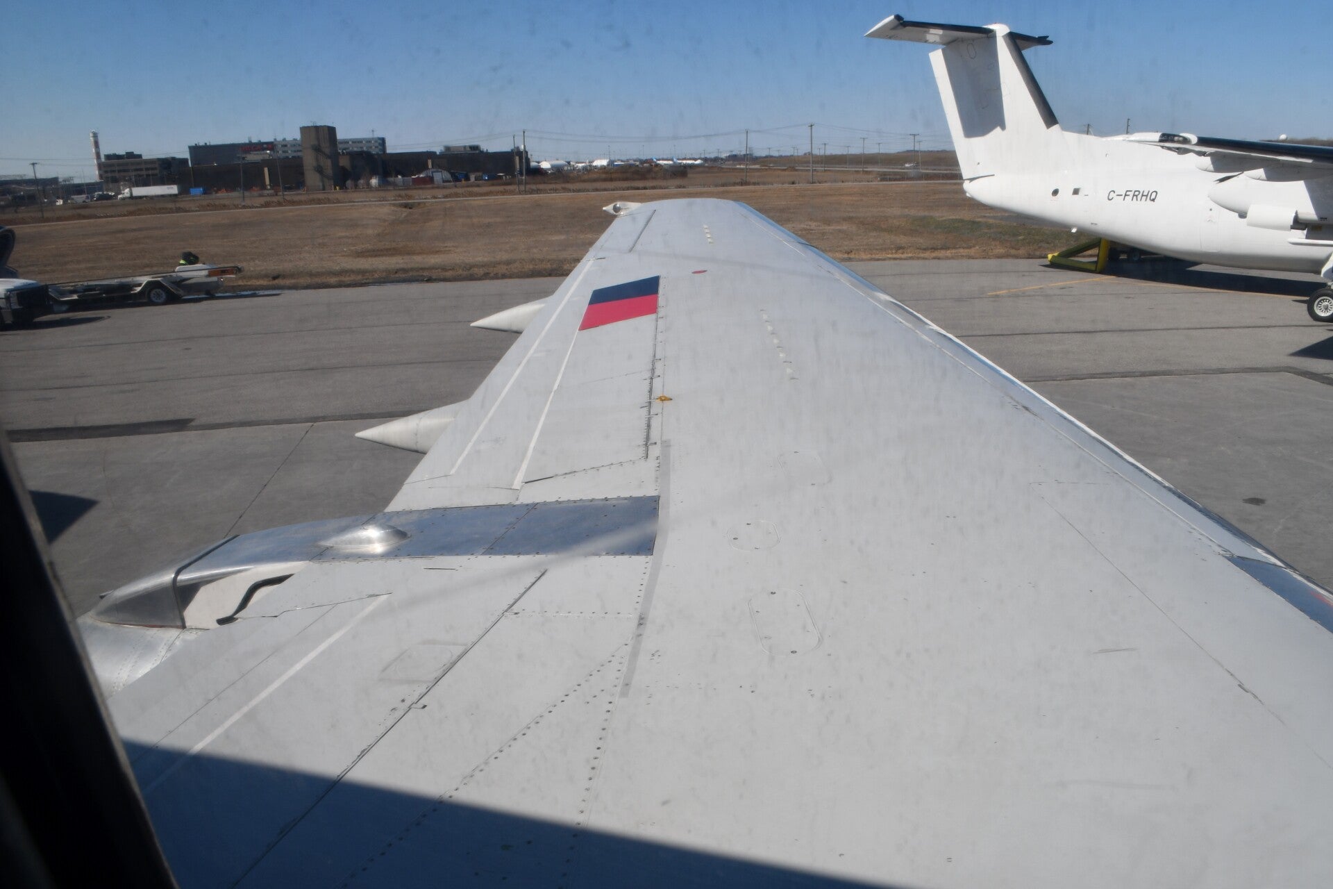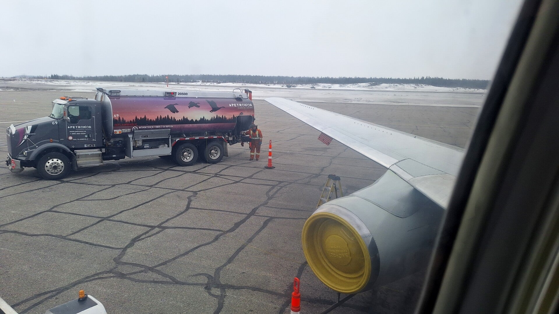 La Grande is just a short stop on this route, but it also serves as a key hub for Air Inuit’s northern operations, especially for their Dash 8 fleet. Most of the crew members disembark here, ending their leg aboard the 737. While the aircraft is being refueled, the four AvGeeks onboard take the opportunity to stretch our legs and chat with the flight crew.