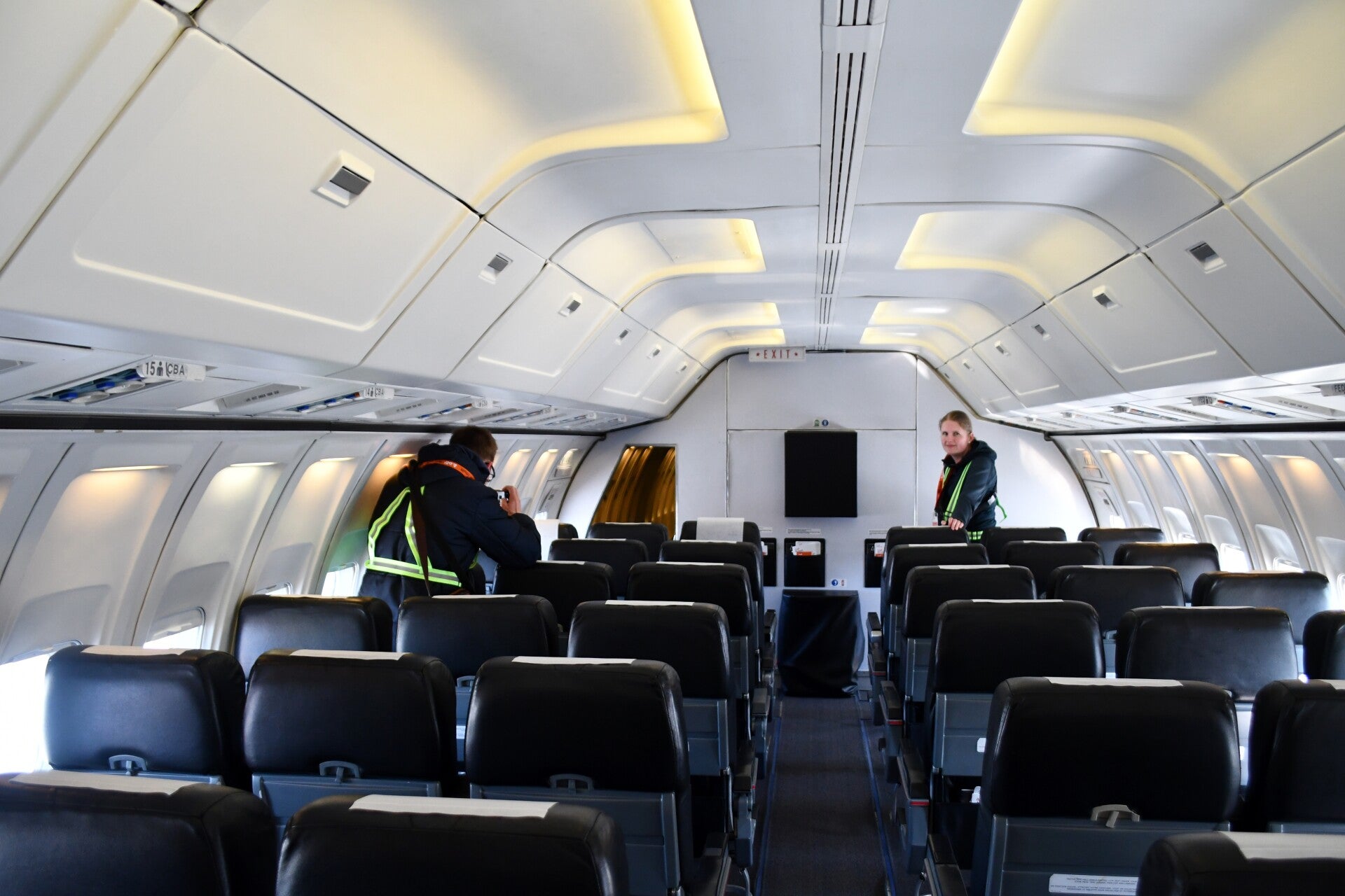 Like stated earlier, our main focus is the 737-200 parked at the back. This aircraft, C-GNLK, was even the first Boeing 737 that operated for the Dutch low cost carrier Transavia! A small team of engineers is currently busy with the conversion of the cabin to full-pax configuration. This is one of the key selling points for the old Boeing 737-200s, which is their versitality. The large cargo door gives access to a cargo floor that could accommodate up to six cargo pallets, but this cabin can also be converted to a passenger cabin.