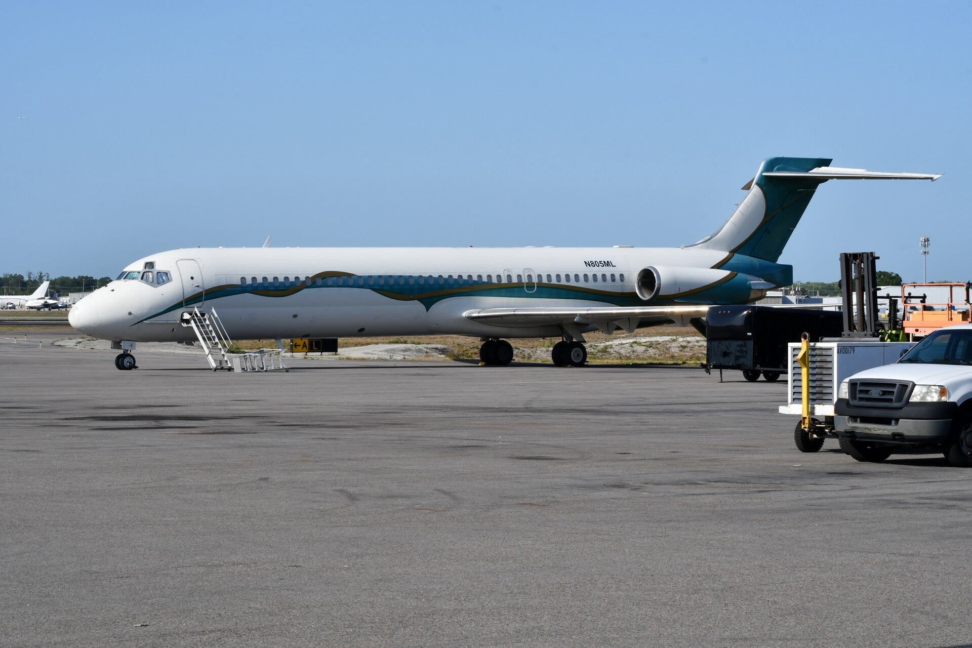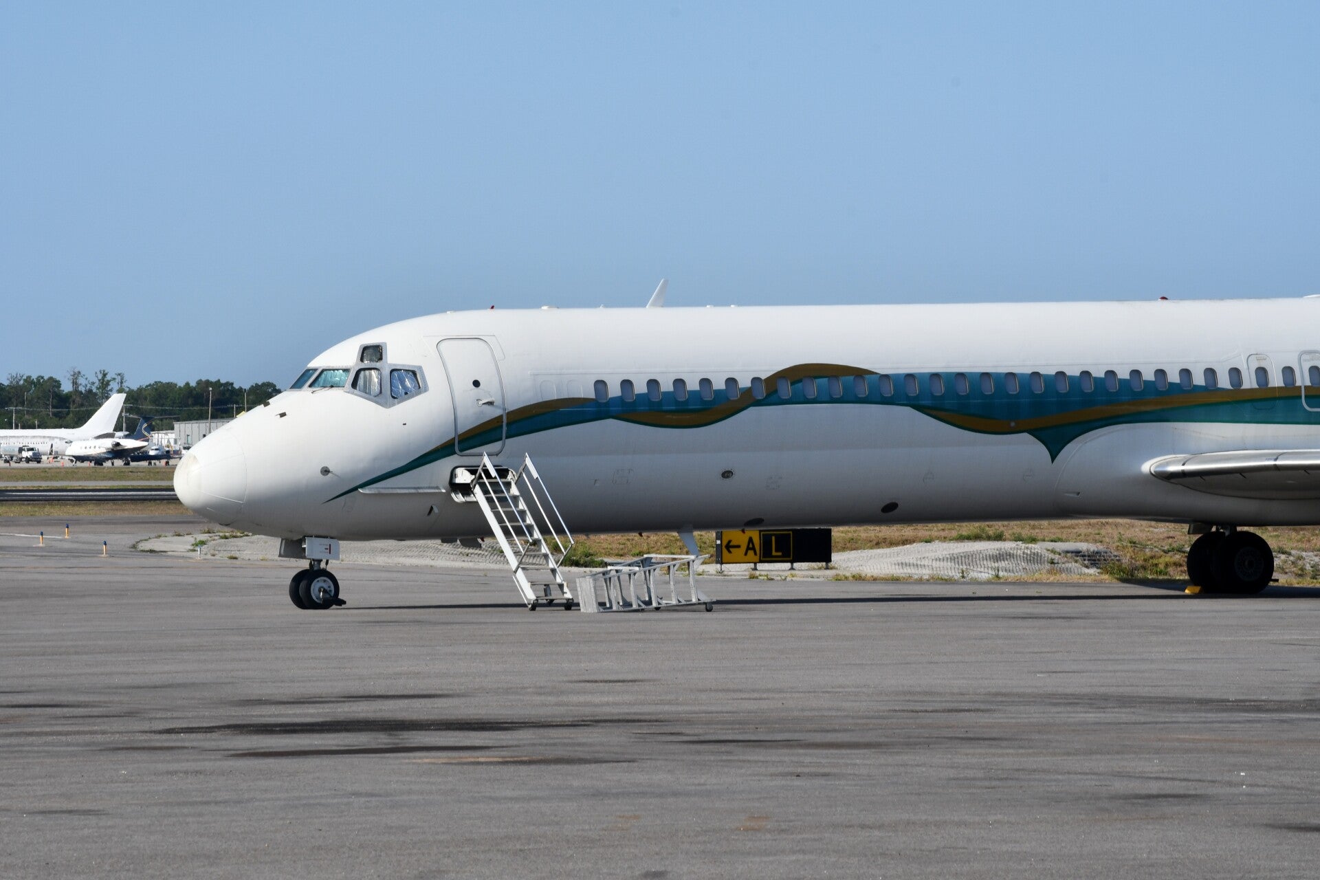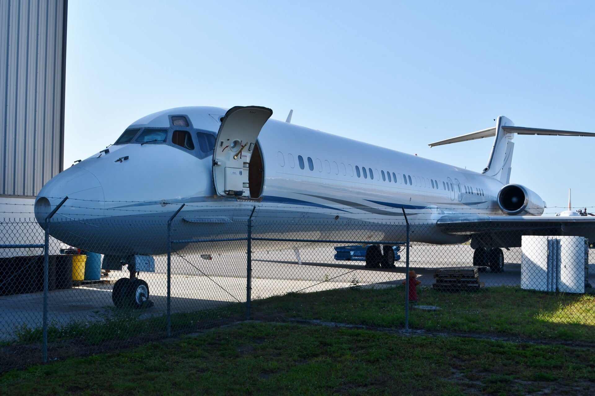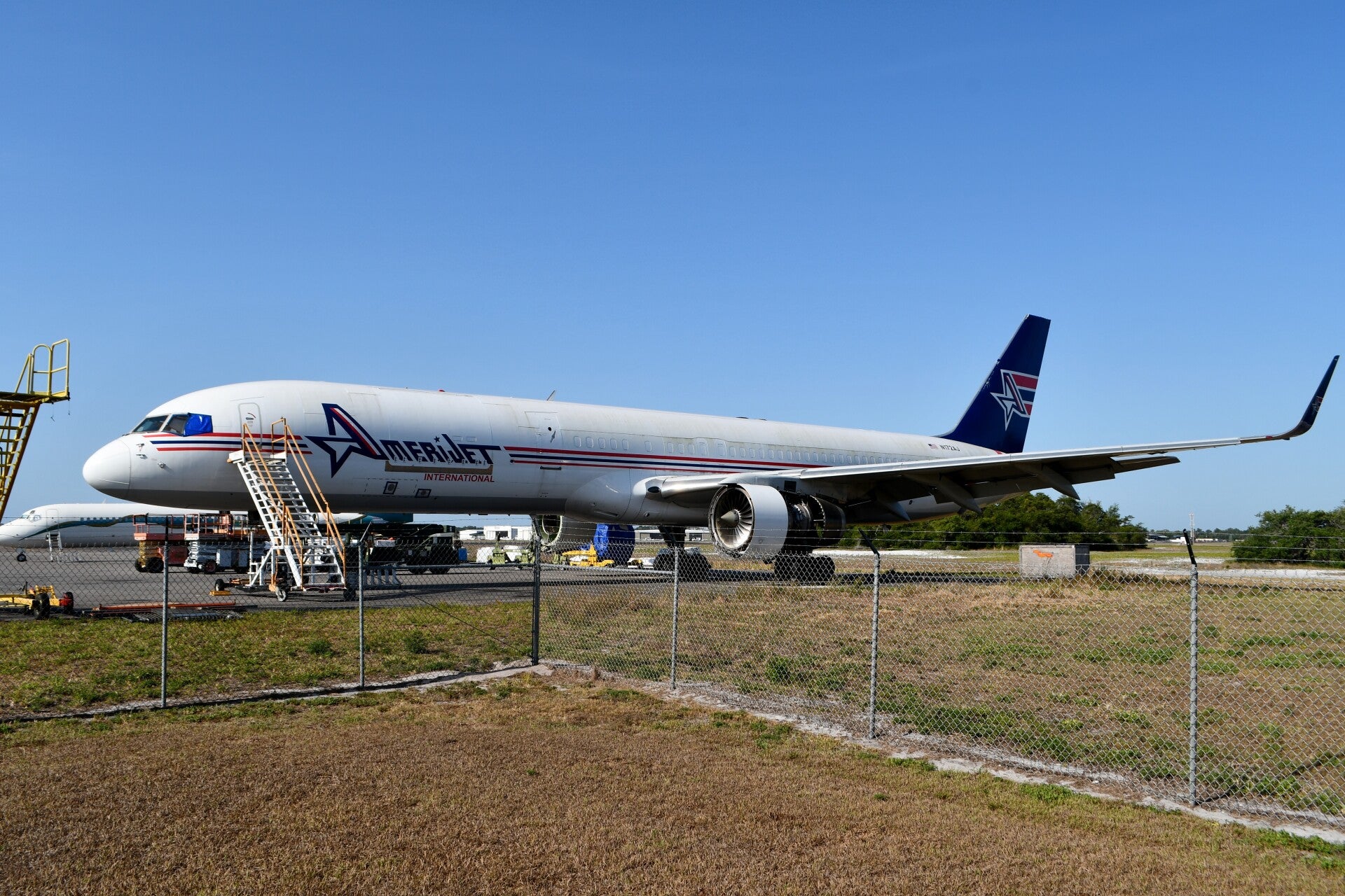On the other side of the airport, we arrive at the maintenance facility. Here, we get really, really close to one of the MD-87s. This particular aircraft—VP-CAA— was the last Mad Dog to ever visit our home airport, Schiphol, up to this day! The other MD-87, N805ML, previously flew as VP-CTF in the same VIP livery. This spot turns out to be a goldmine, there’s a lot to see. We also spot an Airbus A321, partially wearing the Holiday Europe livery, now in the process of being converted into a freighter. The Amerijet 757 parked nearby still looks impressive, even though it's clearly seen better days.