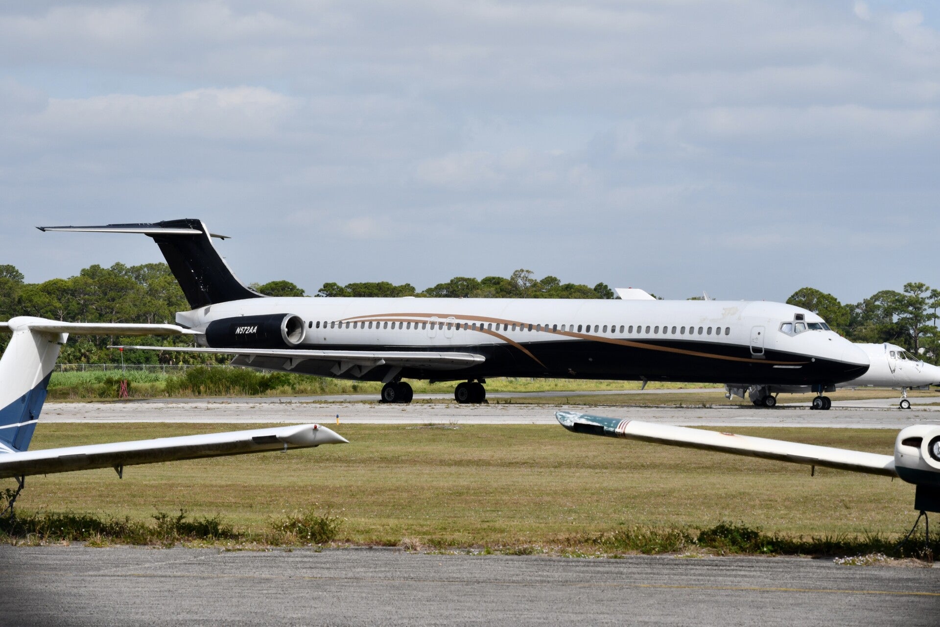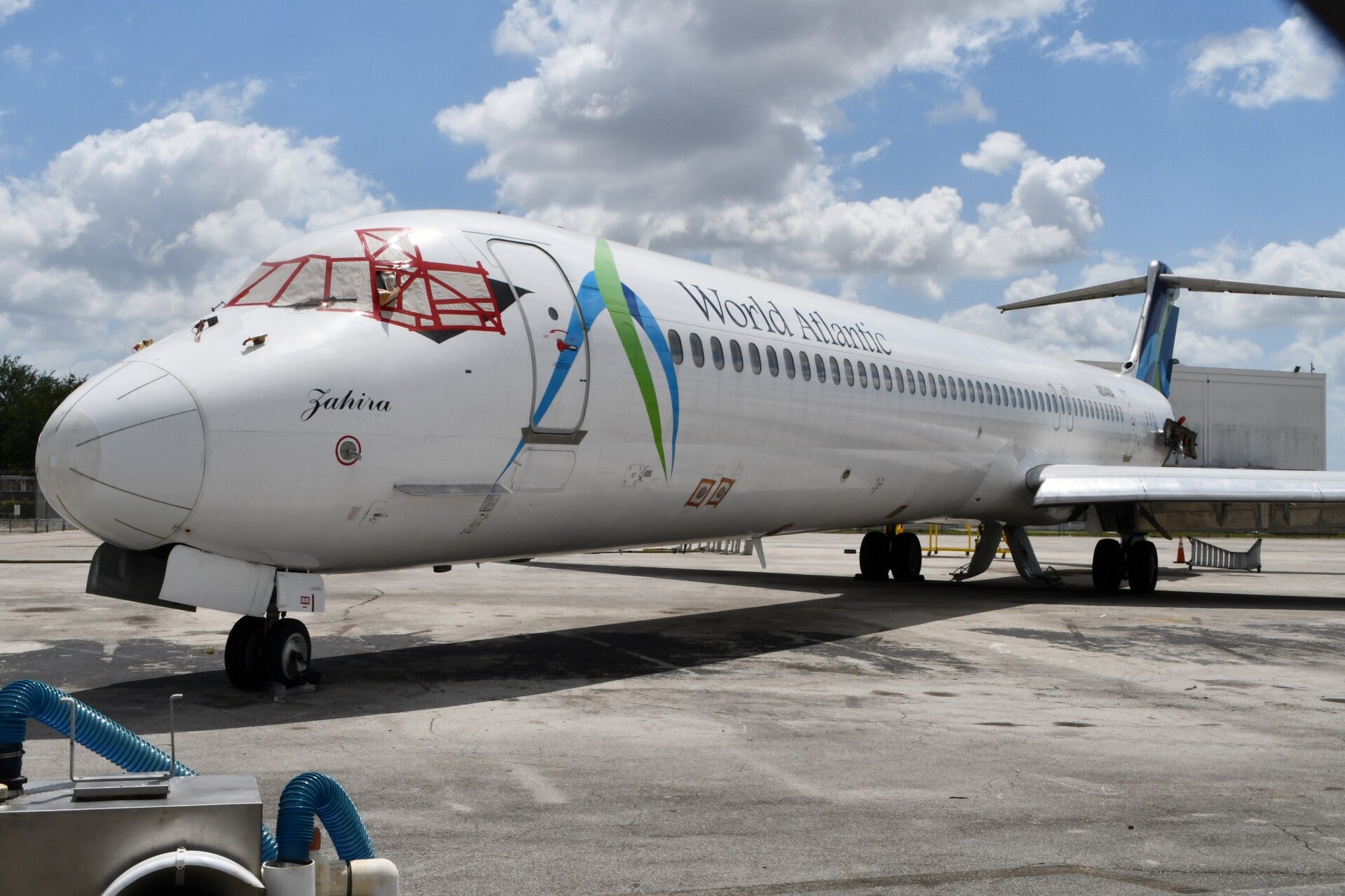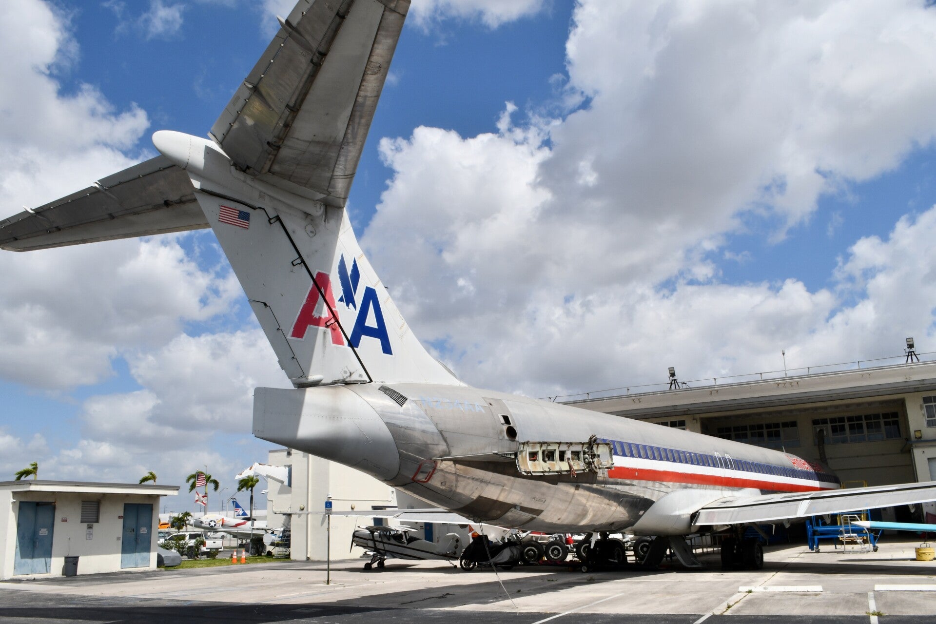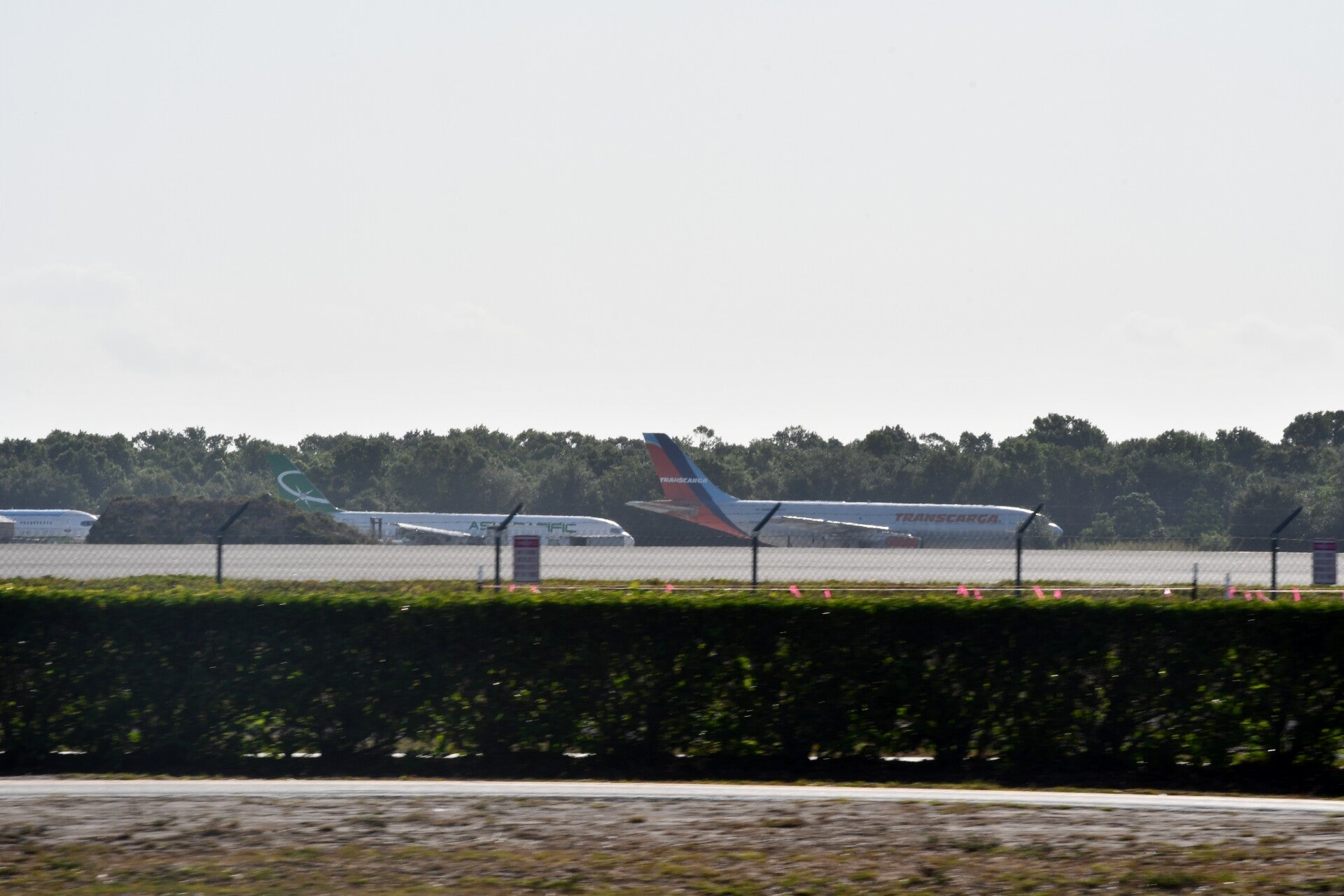 On the other side of the airport, we arrive at the maintenance facility. Here, we get really, really close to one of the MD-87s. This particular aircraft—VP-CAA— was the last Mad Dog to ever visit our home airport, Schiphol, up to this day! The other MD-87, N805ML, previously flew as VP-CTF in the same VIP livery. This spot turns out to be a goldmine, there’s a lot to see. We also spot an Airbus A321, partially wearing the Holiday Europe livery, now in the process of being converted into a freighter. The Amerijet 757 parked nearby still looks impressive, even though it's clearly seen better days.