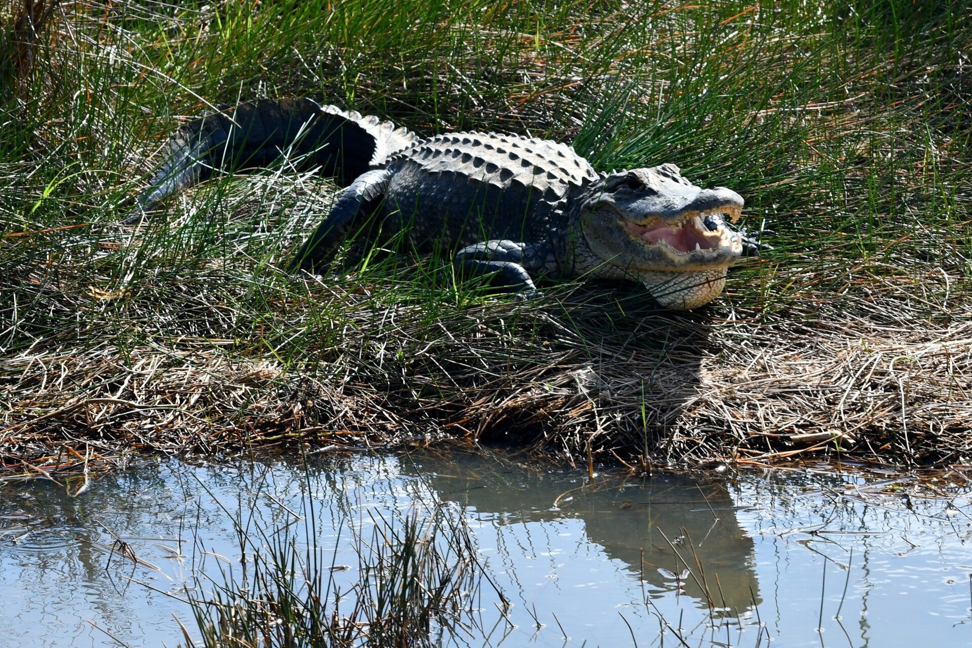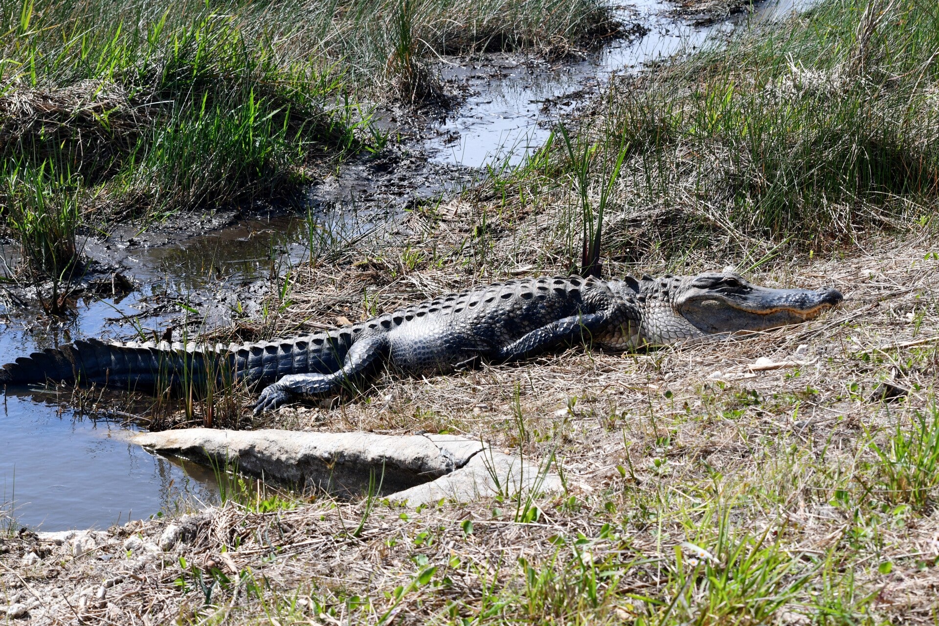 Once we board the NASA bus, it's time to enter the grounds that are known to shake, rumble, and echo with history. And gators. There are plenty of gators here too.