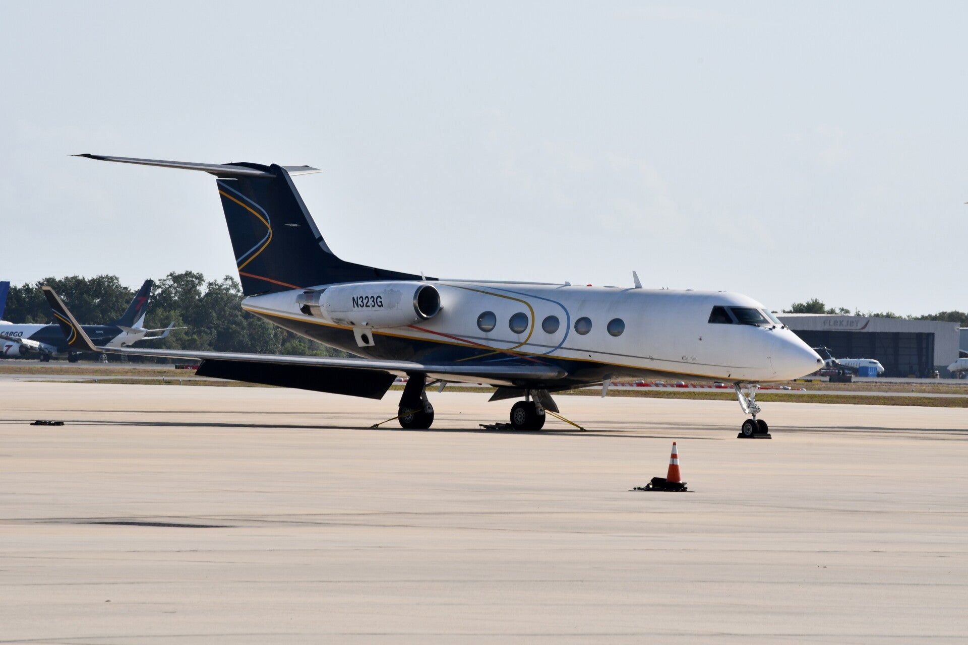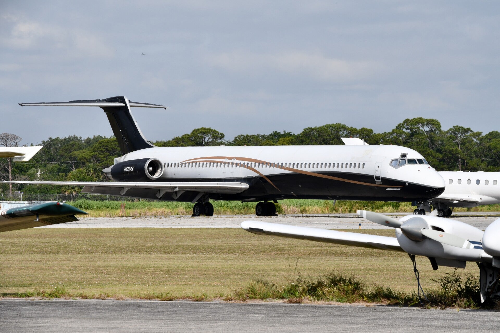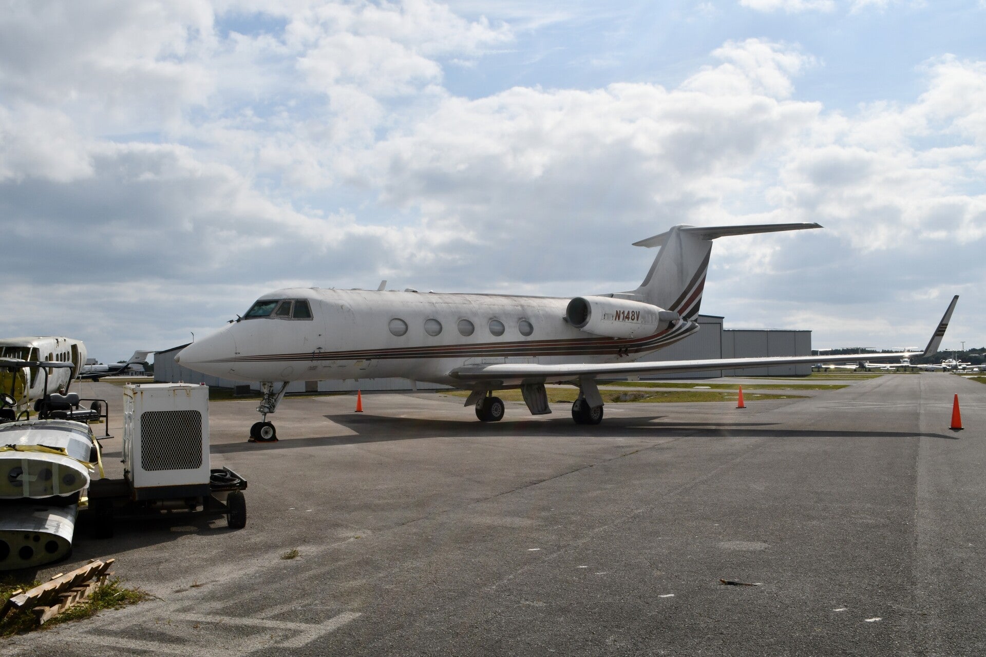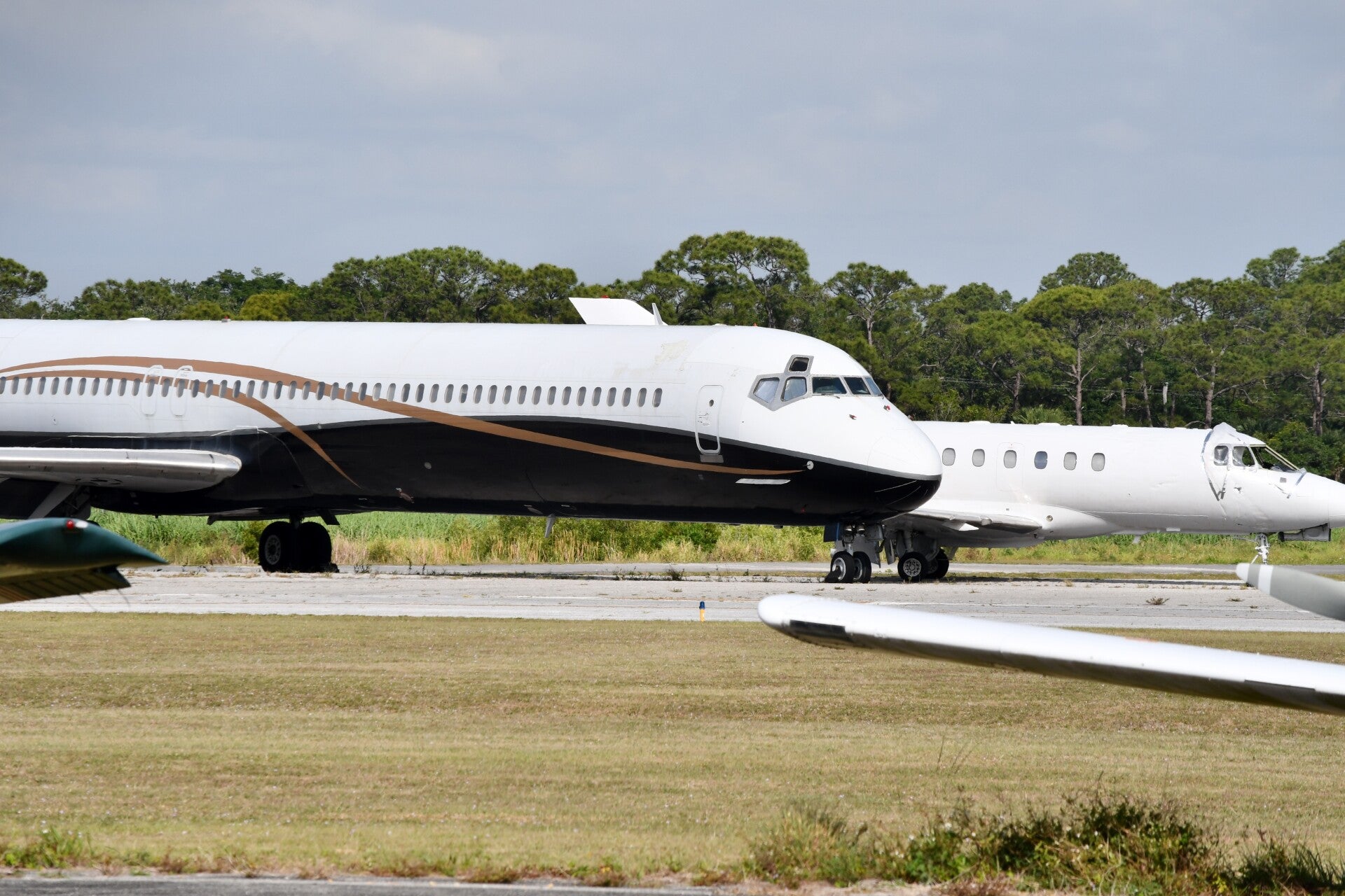 Eventually, we make our way to the hangar area on the west side of the airfield. Here, we find several stored bizjets and a couple of airliners. Two sleek Gulfstream IIIs immediately catch our eye, definitely the highlight of this corner. In the distance, we spot a maintenance operation with a few more aircraft, including two classic McDonnell Douglas MD-87s! Let’s go check them out.