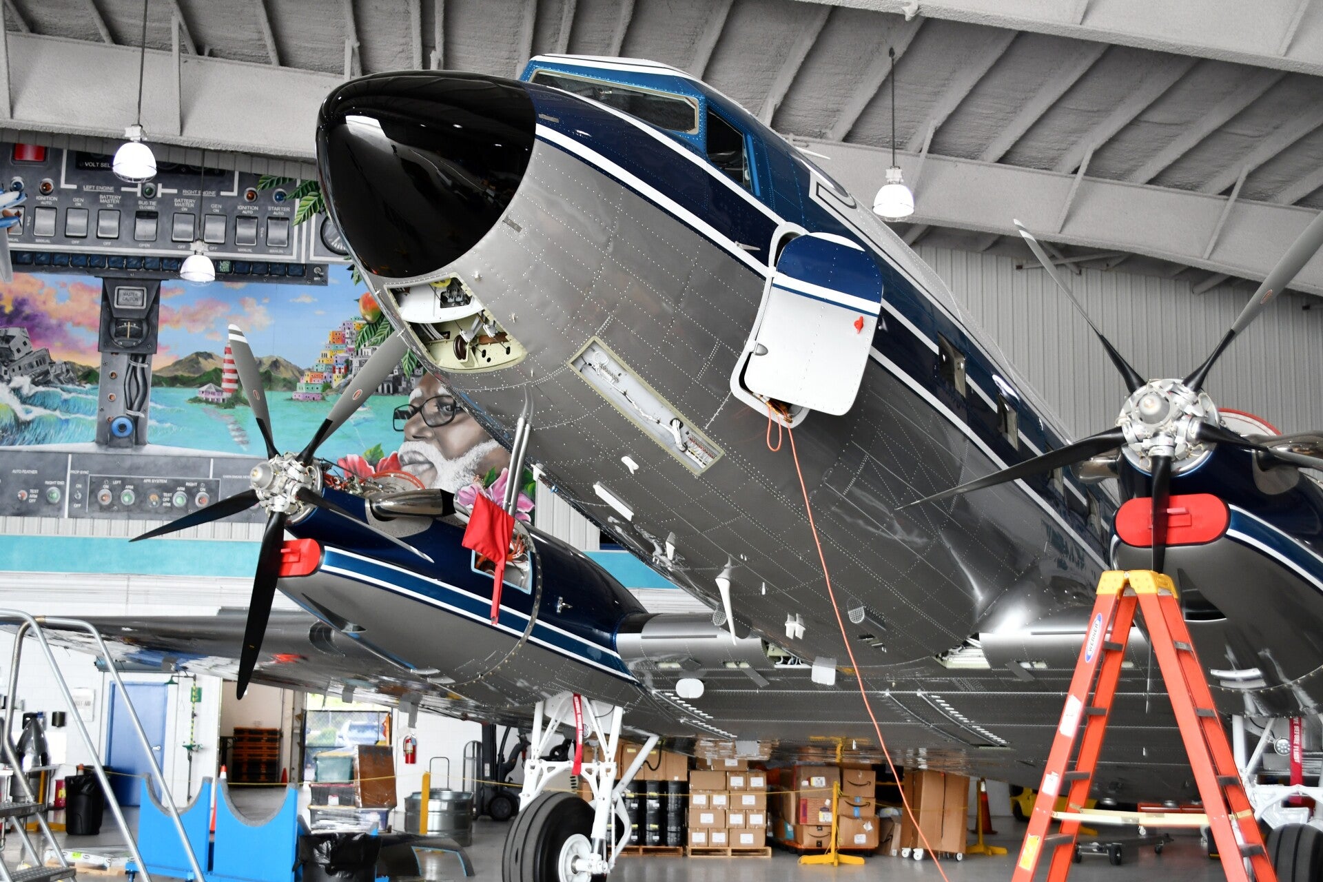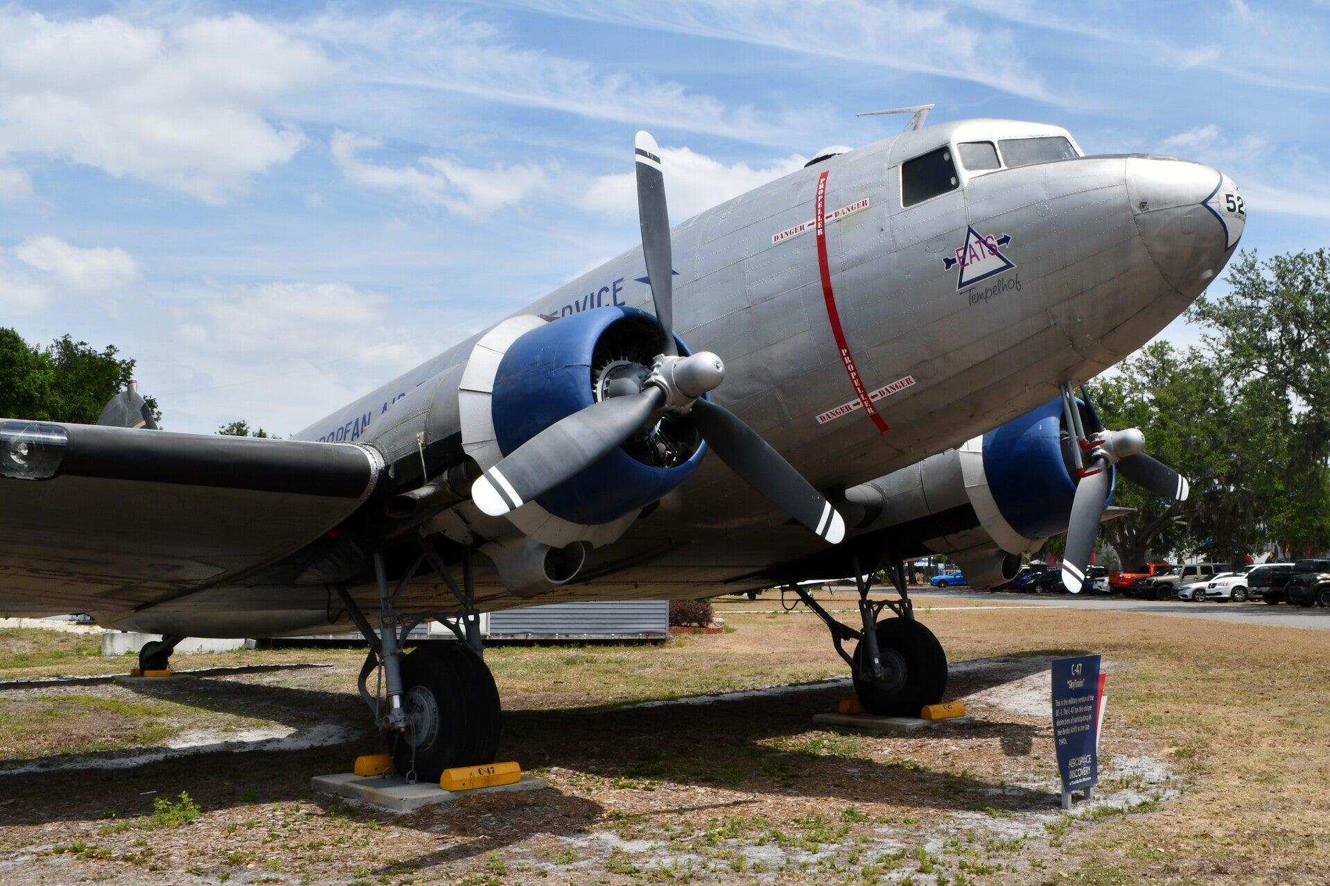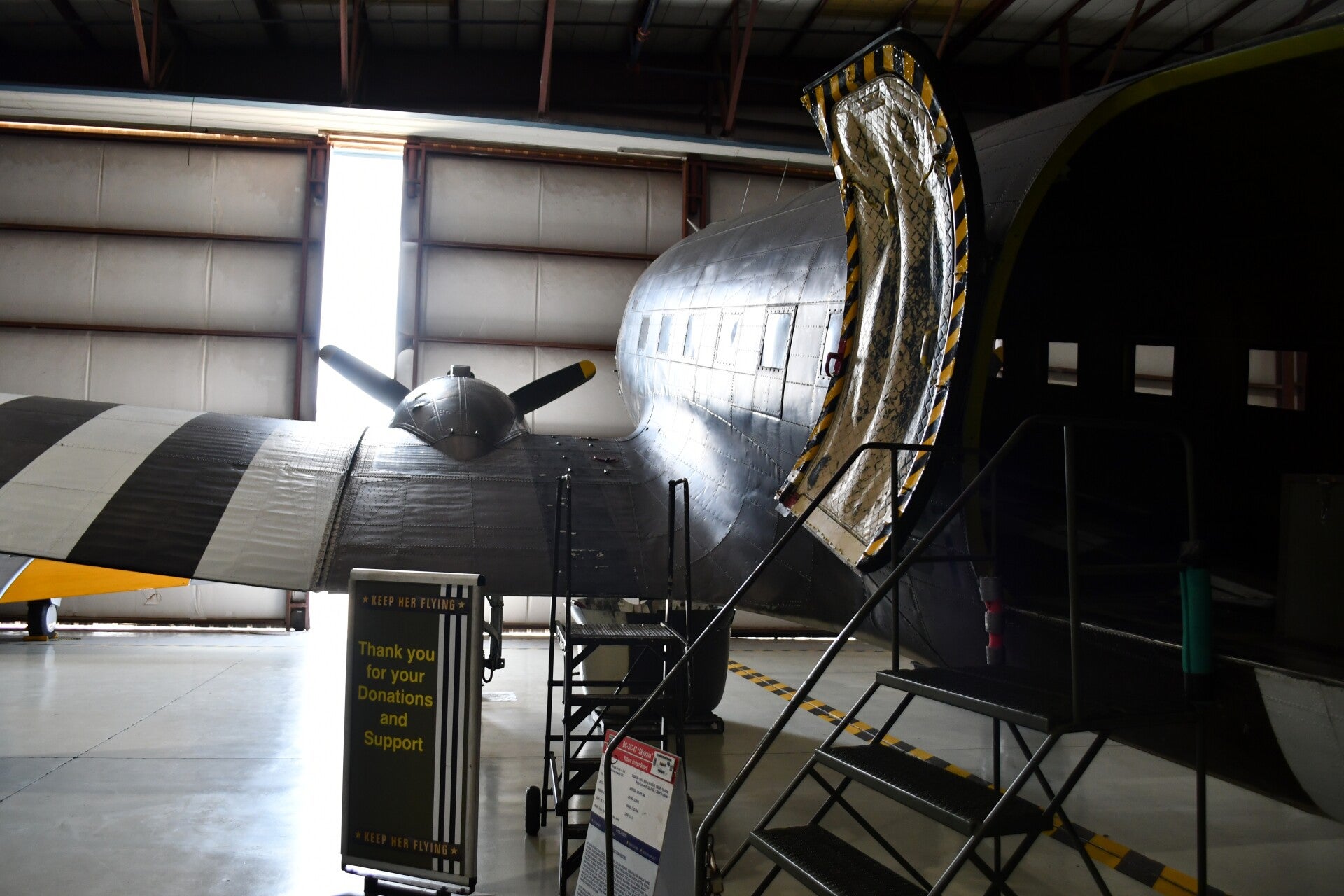 That’s right, this museum doesn’t just preserve; it performs. Several aircraft in the collection are airworthy, and the museum makes a point to keep them that way. But none is more symbolic, more storied, or more beloved than the museum’s flagship: a 1941 Douglas C-47 Skytrain, “Tico Belle”. As a military adaptation of the civilian Douglas DC-3, the C-47 was re-engineered for rugged use: reinforced floors, a cargo door, hoisting gear, and a celestial navigation dome made her a wartime workhorse.