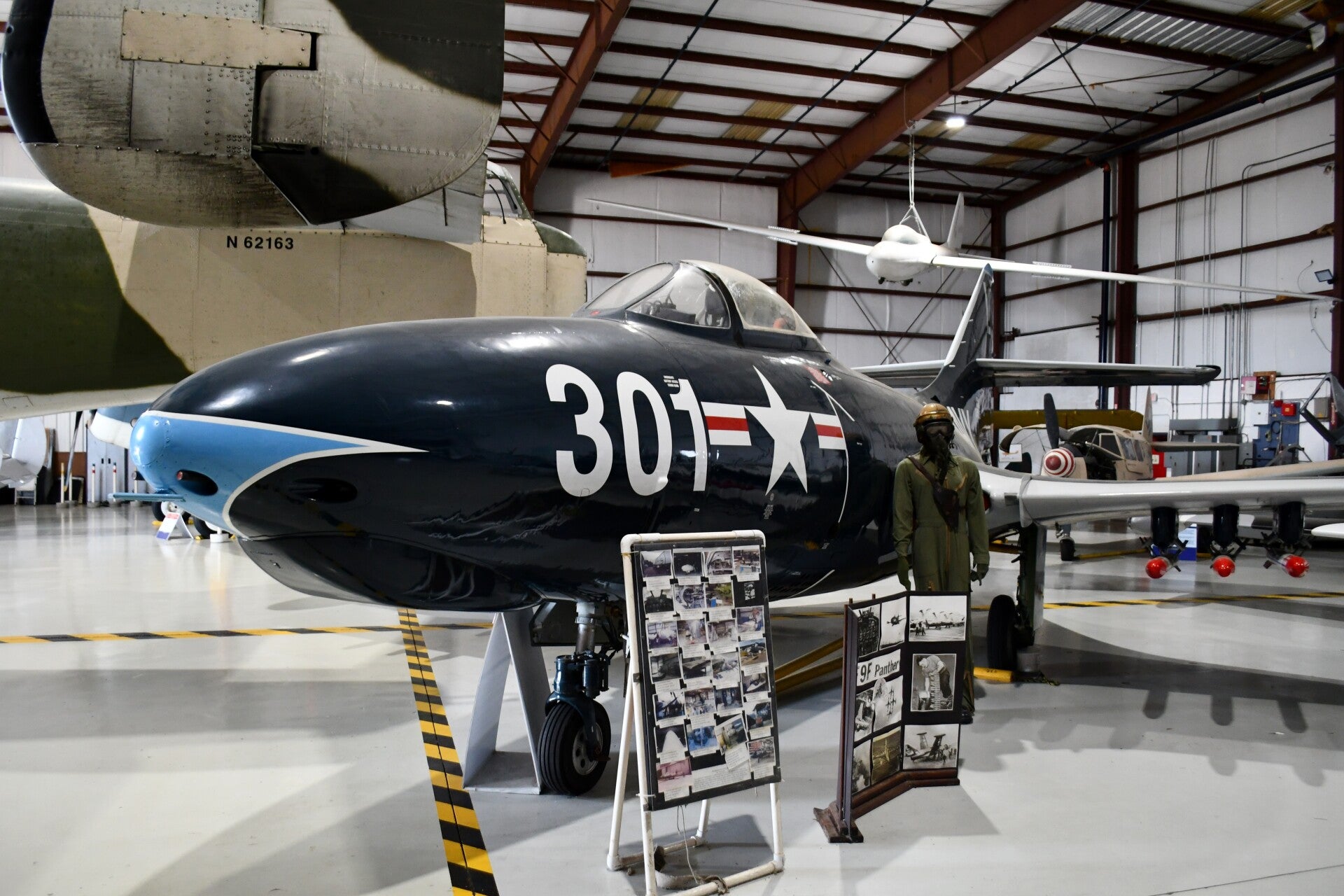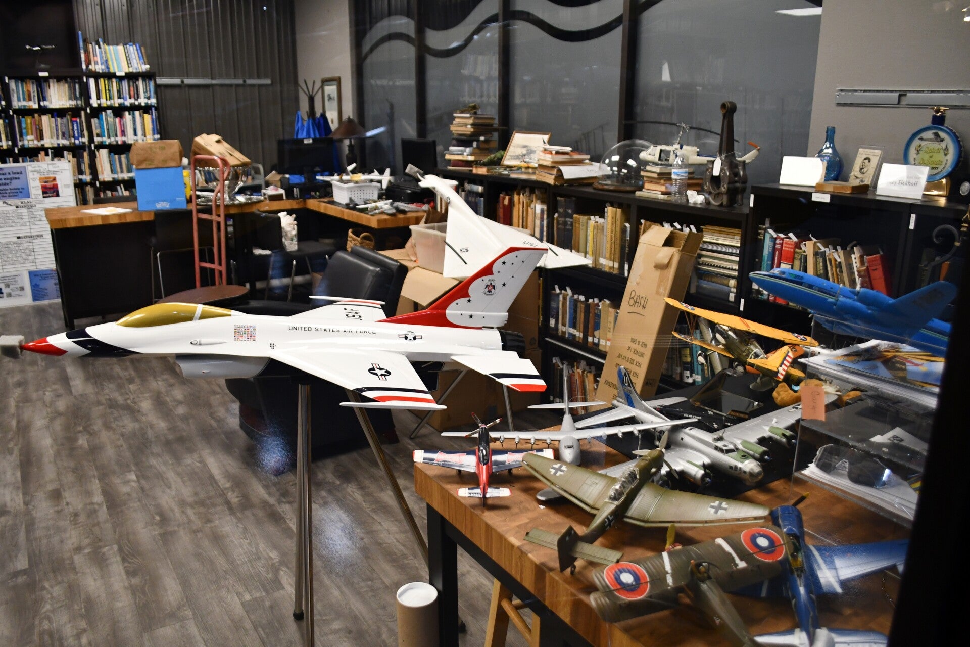 Around it, a treasure trove of American airpower: a Blue Angels F/A-18 Hornet, an F-16A Fighting Falcon, and several other highlights fill the room. The layout feels immersive, without being crowded.