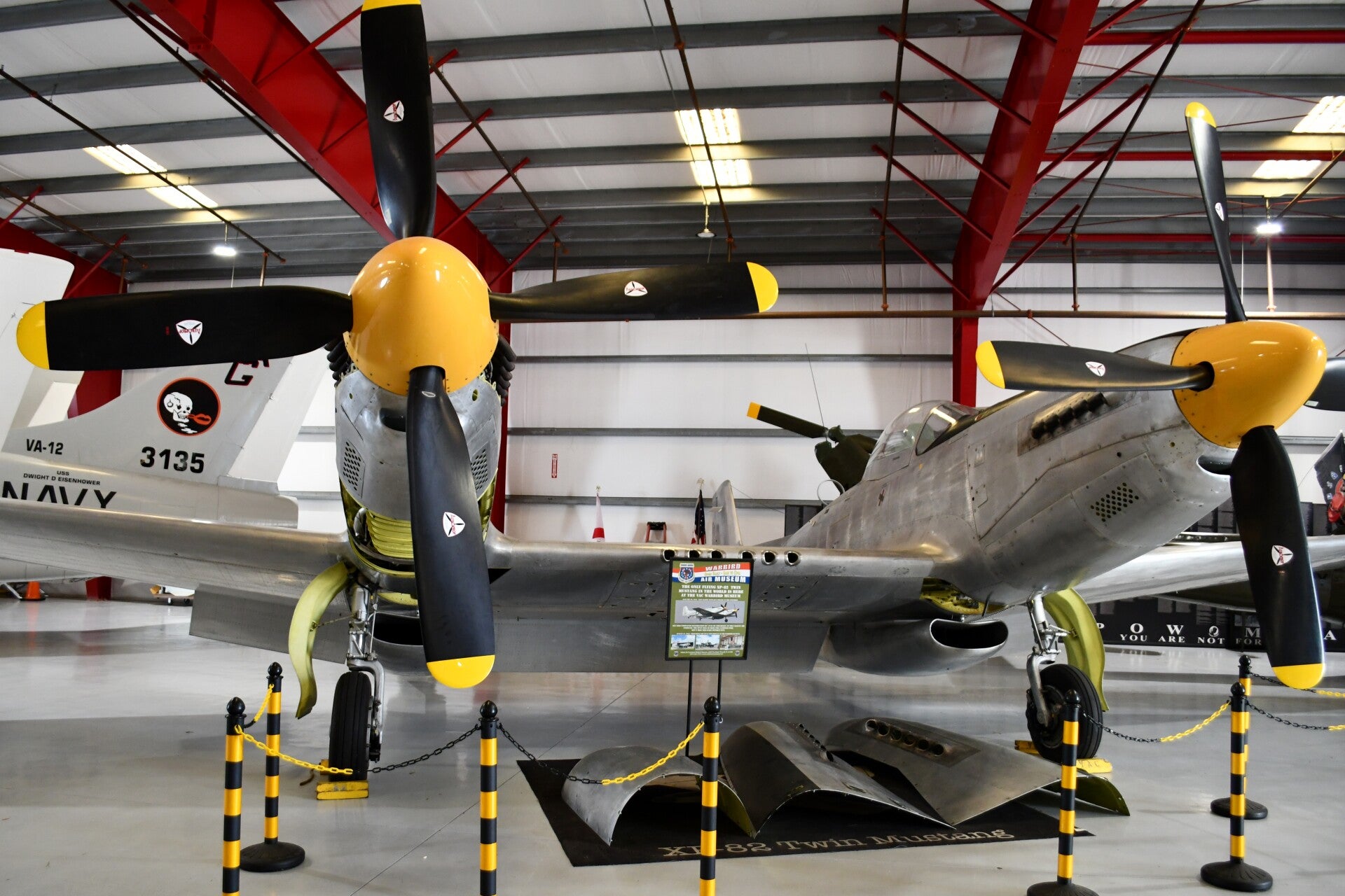 We move on to the next hall which is equally impressive. We are greeted by a nicely worn-down Beech T-34C Turbo Mentor and a T-2 Buckeye. The main attraction here is another airworthy bird, the XF-82 Twin Mustang.