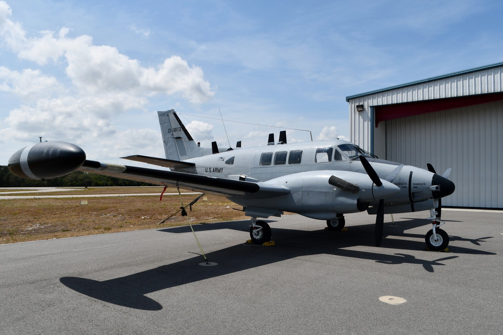 With only half of the second hangar covered so far, we continue our visit outside. The outdoor collection is just as thrilling as what’s inside. Right off the bat, we’re greeted by a Beechcraft RU-21A Ute, a tactical-looking, modified military variant of the Beech A-90 King Air. Rugged and angular, this bird was used for intelligence and surveillance missions, and it still has that covert ops aura about it.