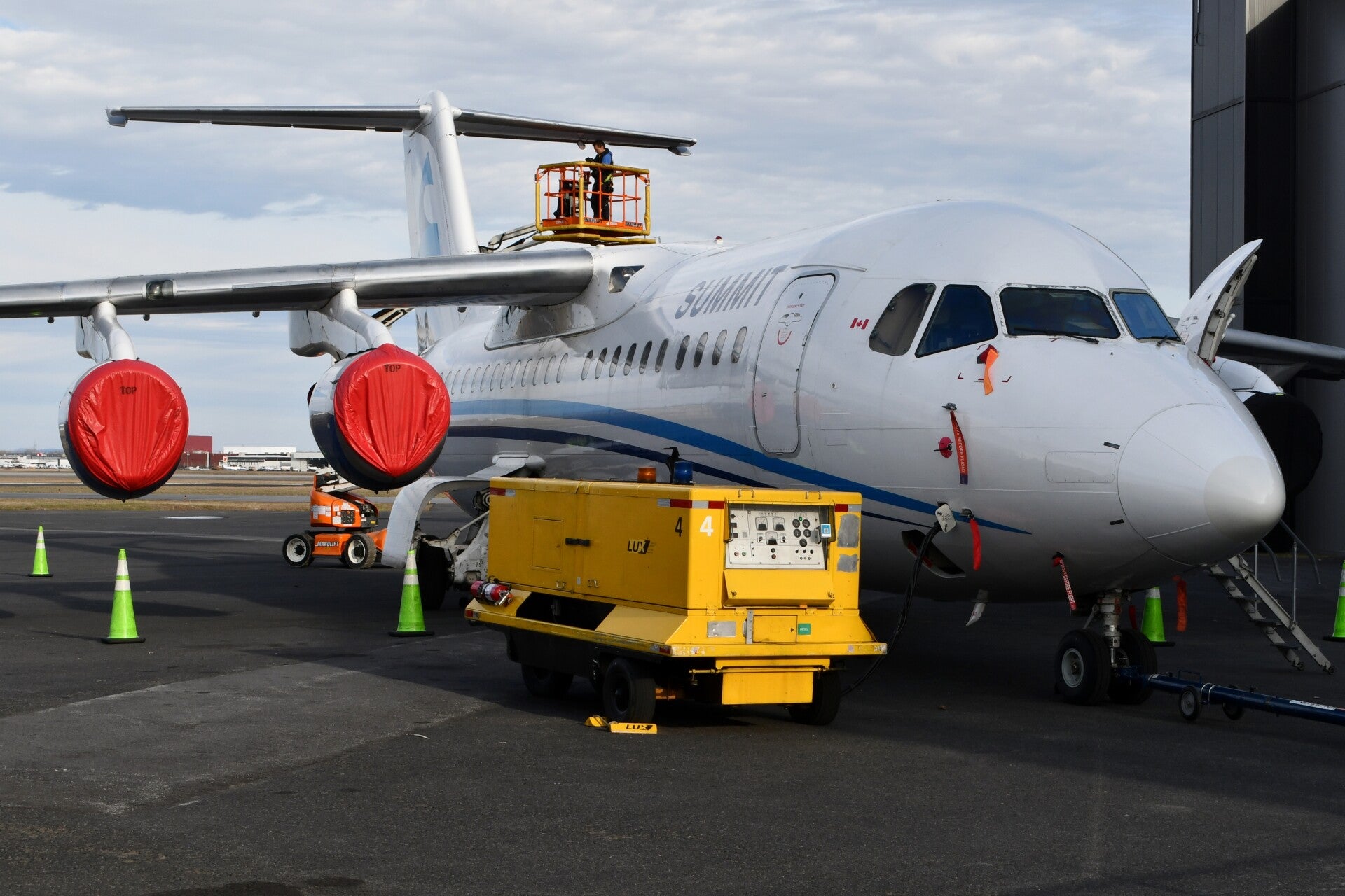 Our first stop is near the FBO, where we’re greeted by some unexpected but very welcome locals: two mellow groundhogs casually doing their thing. And no worries, it’s not Groundhog Day! While our furry friends are hogging the spotlight, we set up our cameras to capture some rare metal: a stored Chrono Aviation Boeing 737-200, and a Bombardier CS100 (or Airbus A220 if you prefer the newer name) tucked away at the local aviation school. Meanwhile, over on the FBO ramp, a Summit Air Avro RJ100 is getting some TLC from a team of engineers. First stop, and it’s already a treasure trove.