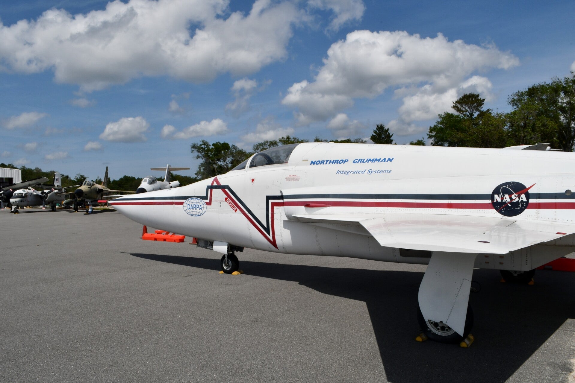 Continuing around the circular path, we find a more mysterious group. Three primarily white jets, seemingly more research than warbird.