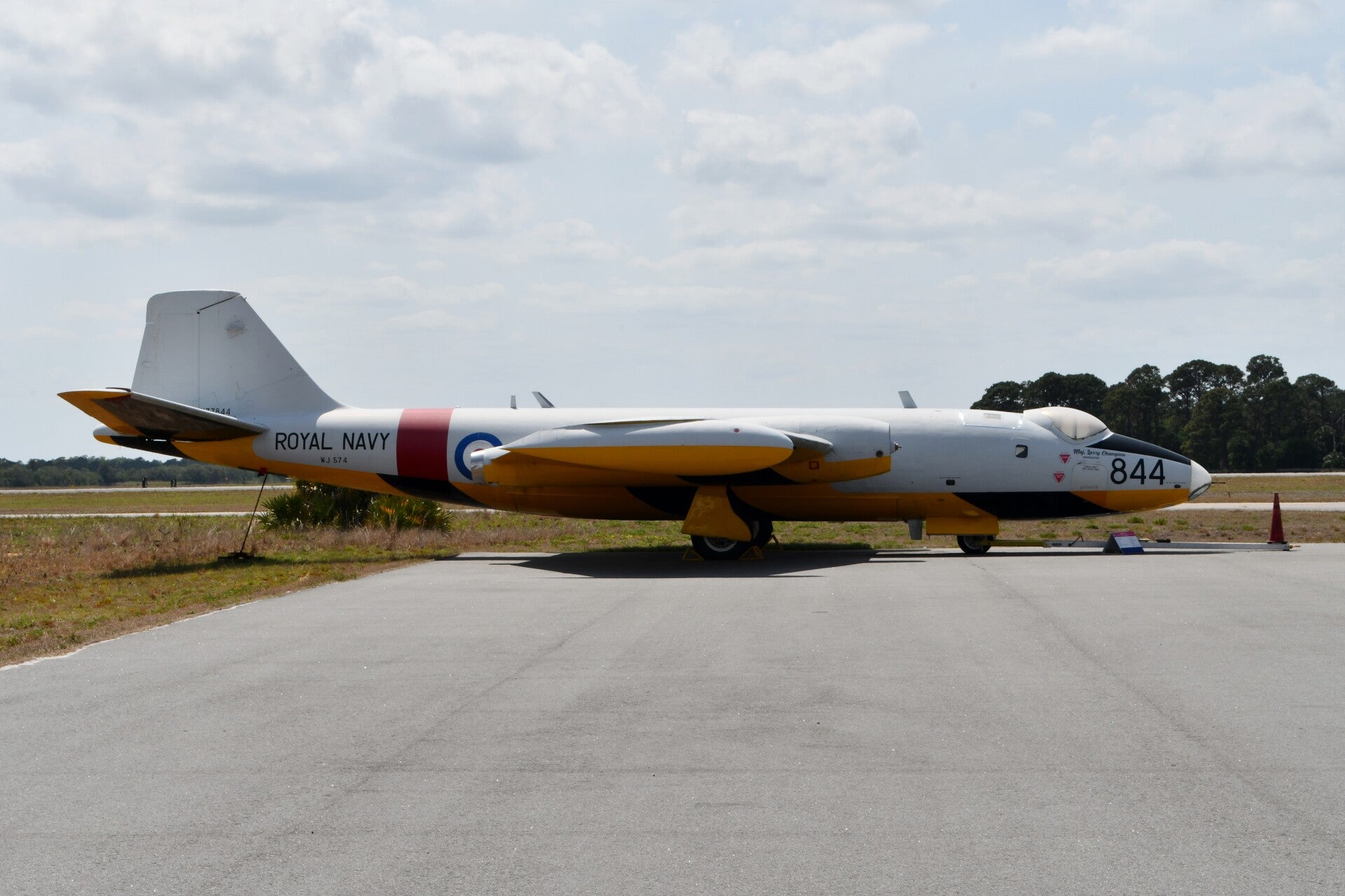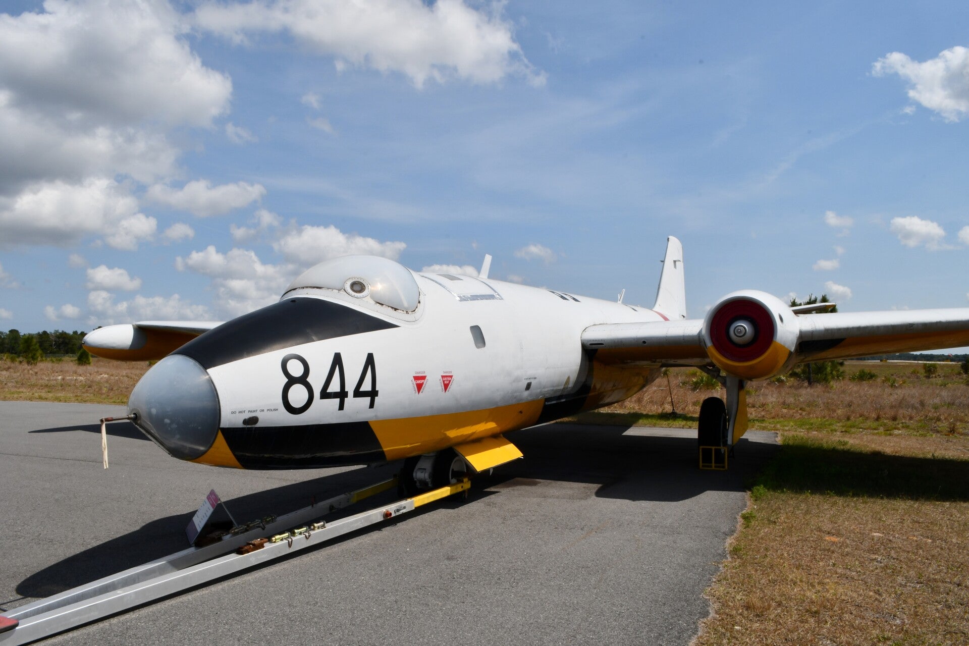And then, to cap it all off, we stumble upon a vivid burst of yellow and black: the BAC Canberra TT.18. This British-built beauty served as a target tug by the looks of it: its underside is painted in unmistakable high-visibility stripes, a signal to "do not shoot at me but at the target behind me"!" Quirky and colorful, it’s a striking final note for the outdoor collection.