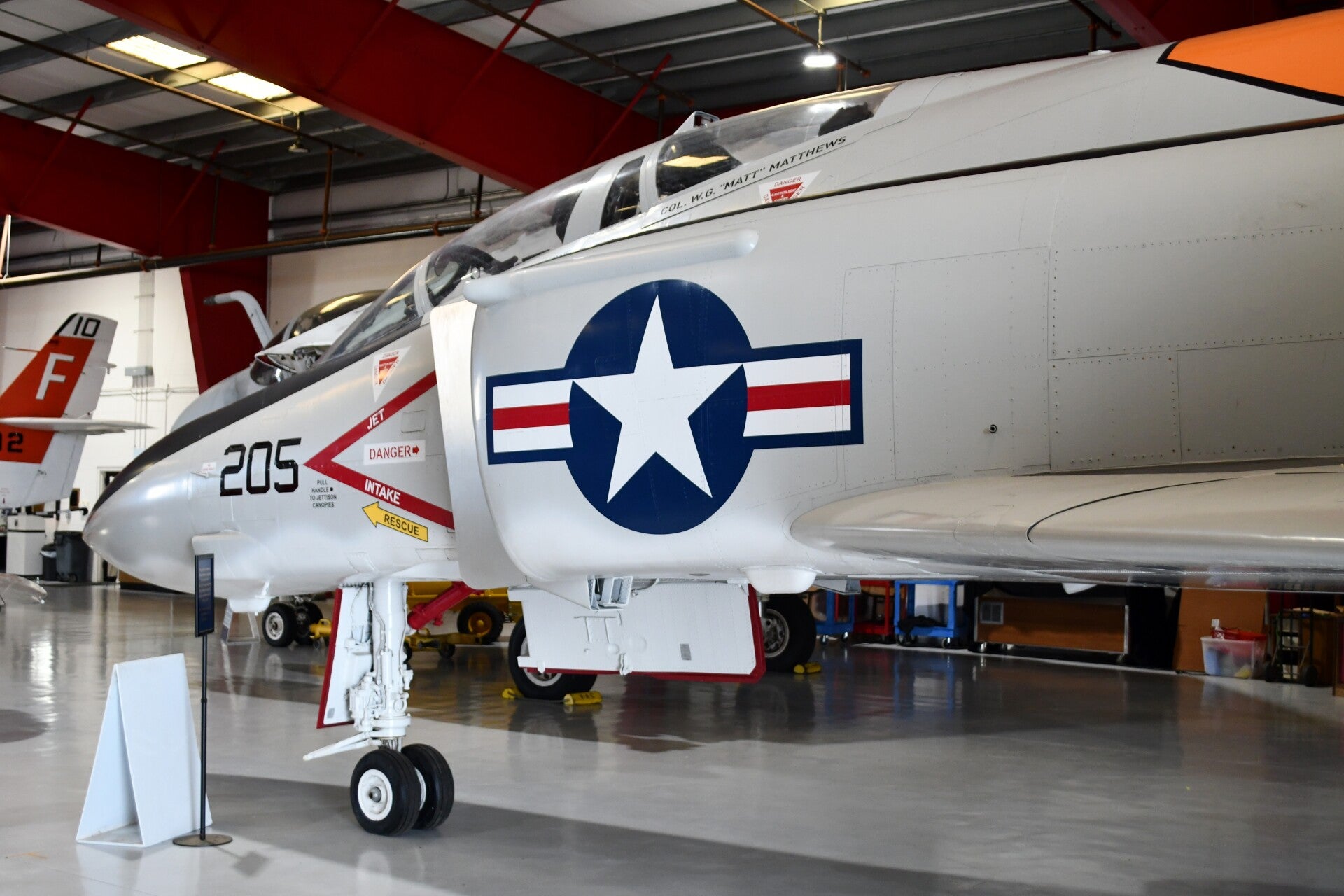 Right there, front and center, is a Grumman F-14A Tomcat, in far better condition than the one we saw back in Lakeland. This one looks the part. Still clean, but operational, and with the right soul, it’s an absolute unit that dominates the space.