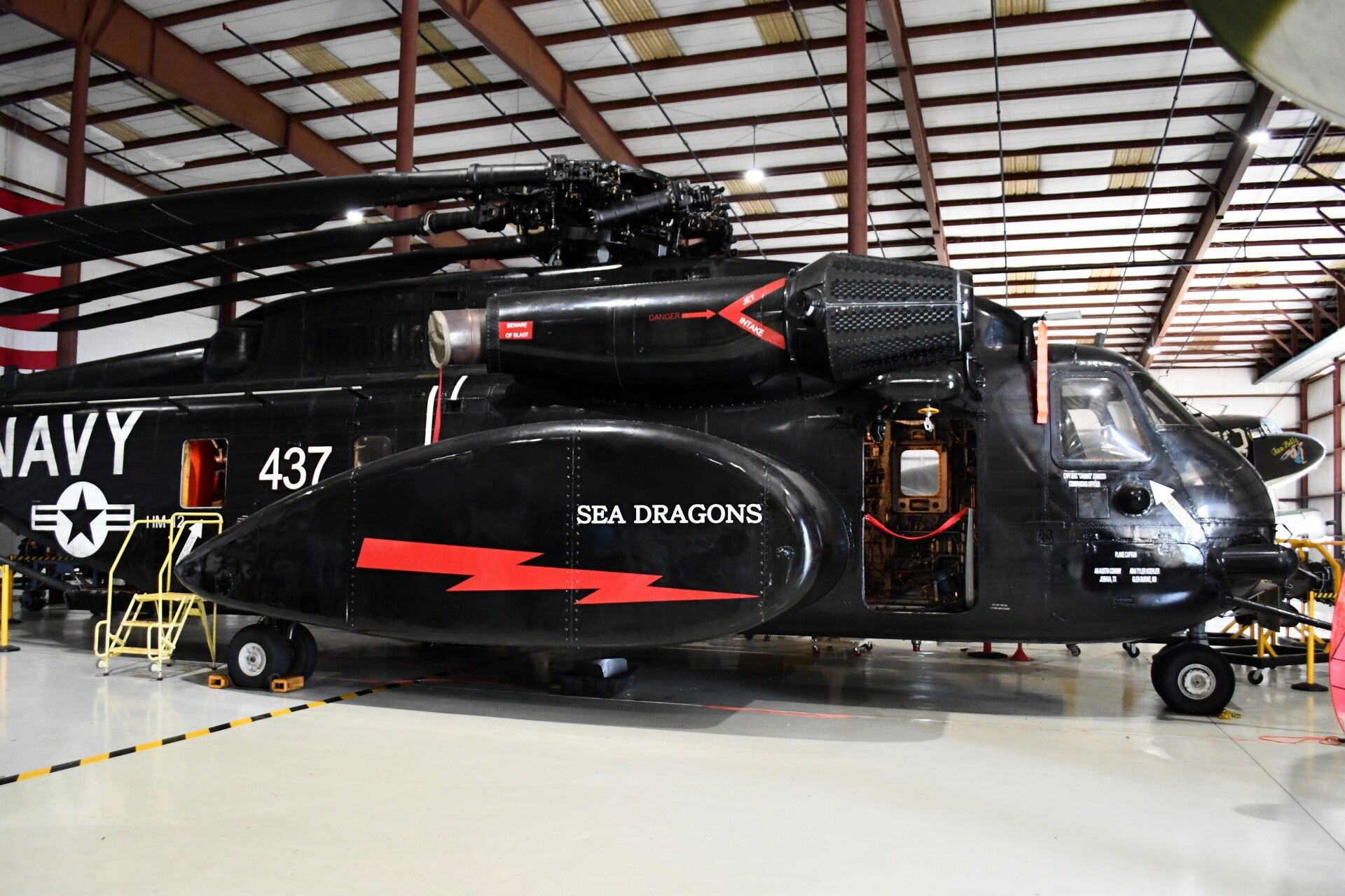 We end up again at the first hangar with the Tomcat and Tico Belle, but now we move on to the other side. Here are some more airworthy legends such as a Beech H-18 and the North American B-25 Mitchell bomber. Prominently in the middle of the hangar is a huge-ass helicopter. The MH-53E Sea Dragon is the most recent aquisition of the museum. This helicopter is an absolute unit.