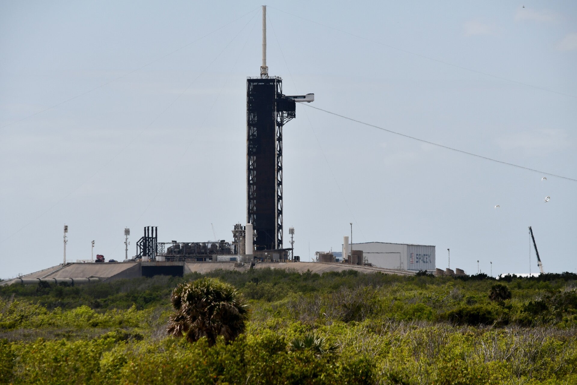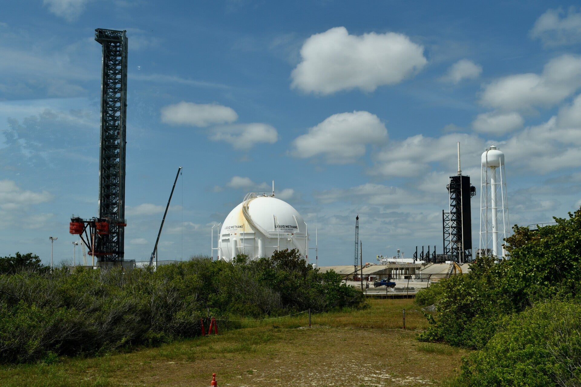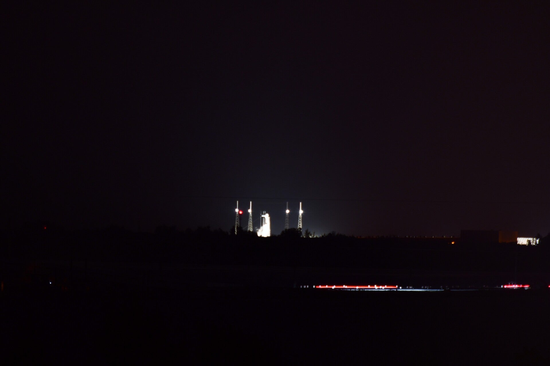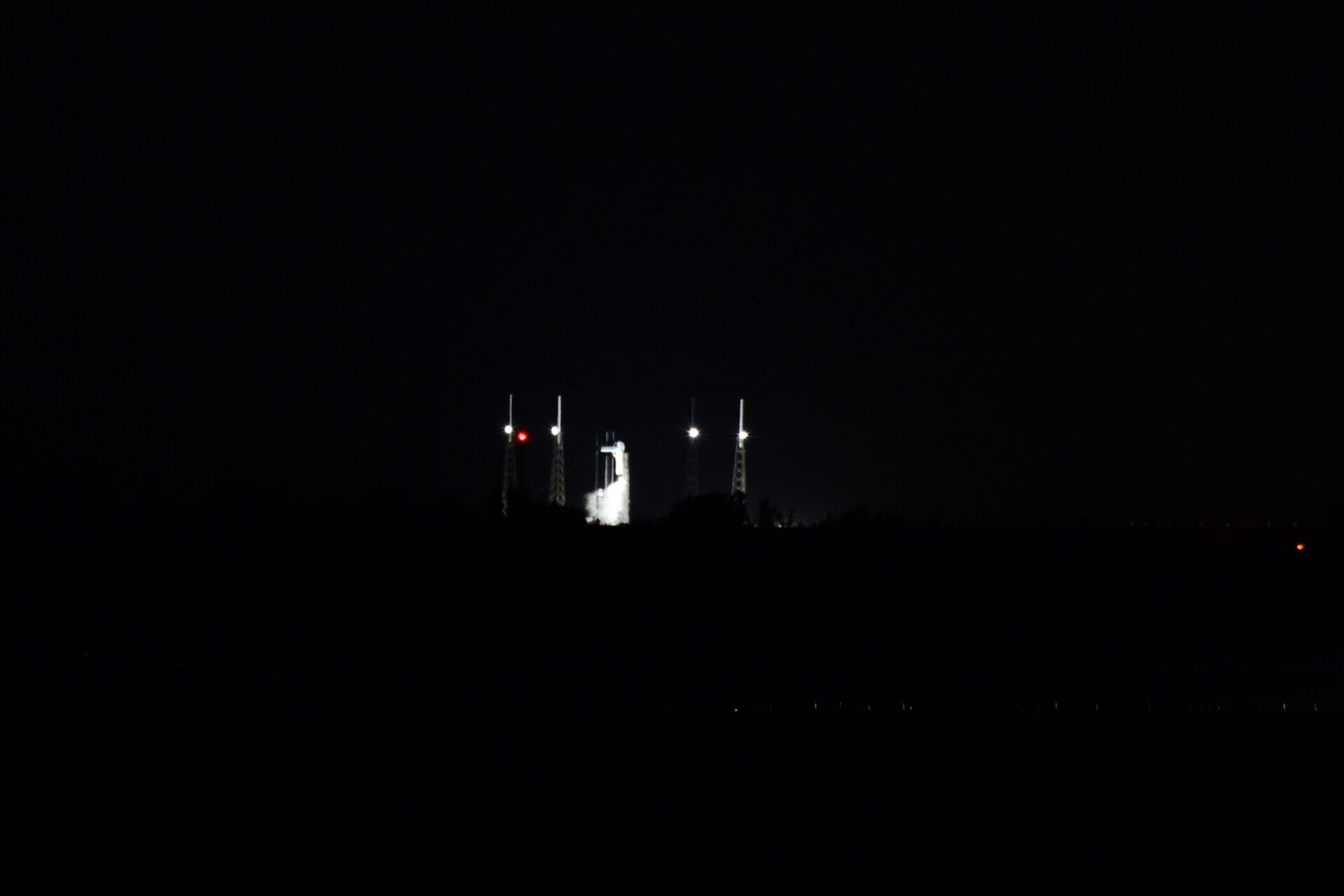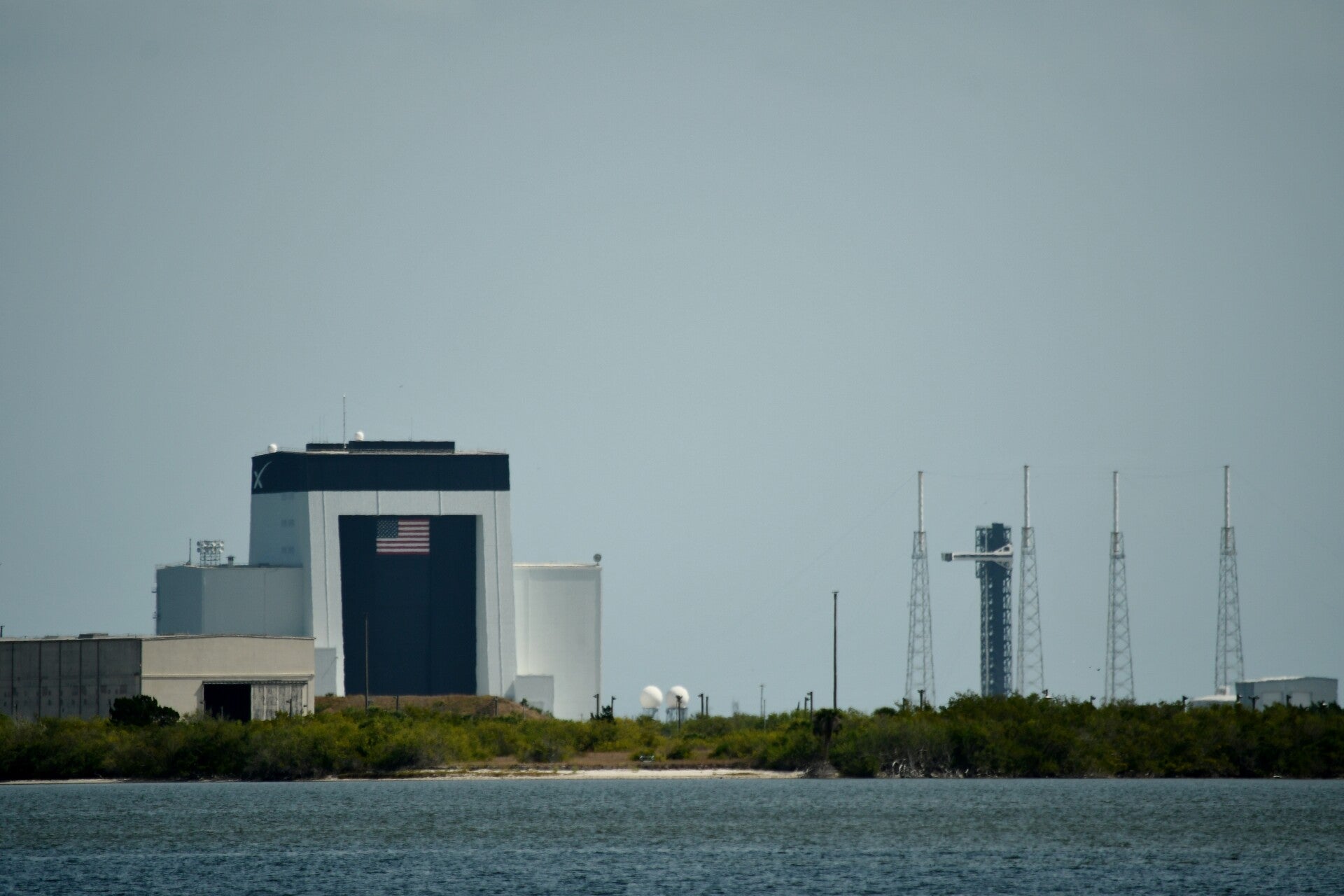 We head straight to a vantage point overlooking the southern area of the space center. This area is home to several military launch pads, as well as launch facilities for Blue Origin and SpaceX. In fact, tonight, a Falcon 9 rocket is scheduled to launch from here for another Starlink mission.