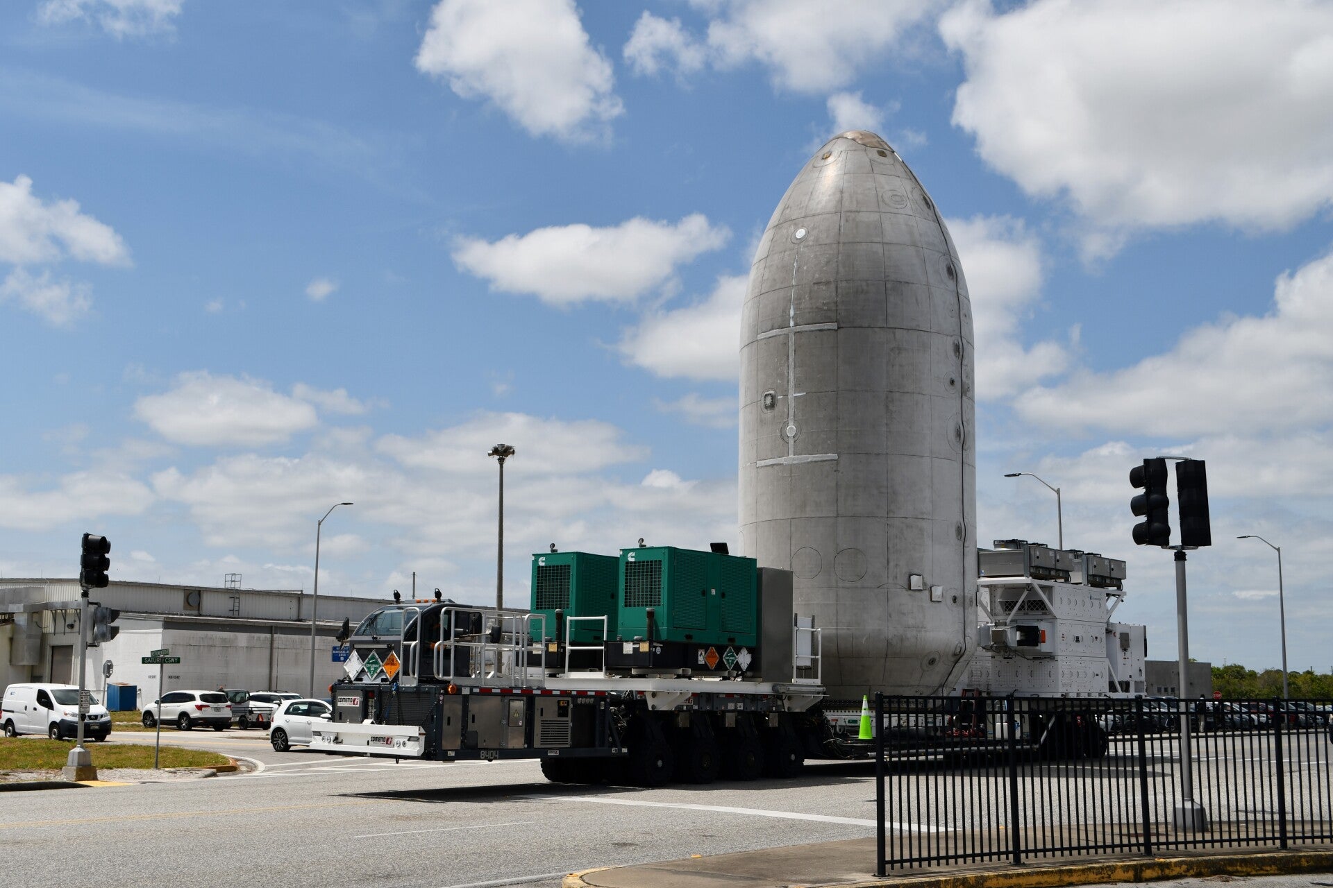 This is the furthest point of the tour. We head back toward the VAB, where we’re allowed to exit the bus and check out several artifacts on display in the parking lot, such as the Launch Escape System and the original entry bridge used by Shuttle crews. While we explore the area, a massive transport vehicle rolls by, carrying the top of the next SpaceX rocket. It’s enormous and an incredible sight to witness up close.