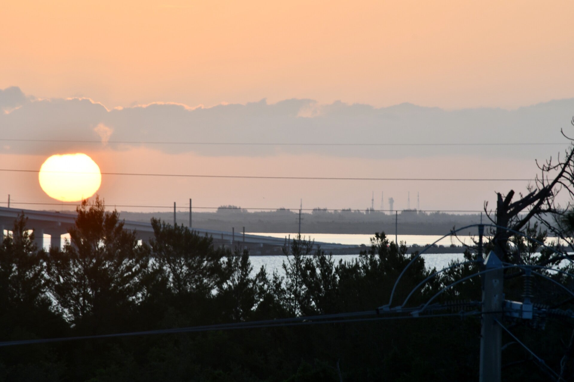 From our hotel room in Titusville, we already have views of a few distant launch complexes. It’s a surreal feeling waking up and seeing pads where Saturn V rockets once stood tall and where Falcon 9s still pierce the atmosphere. With only a short drive ahead, we’re perfectly on time to arrive at the Kennedy Space Center just as the gates open.
