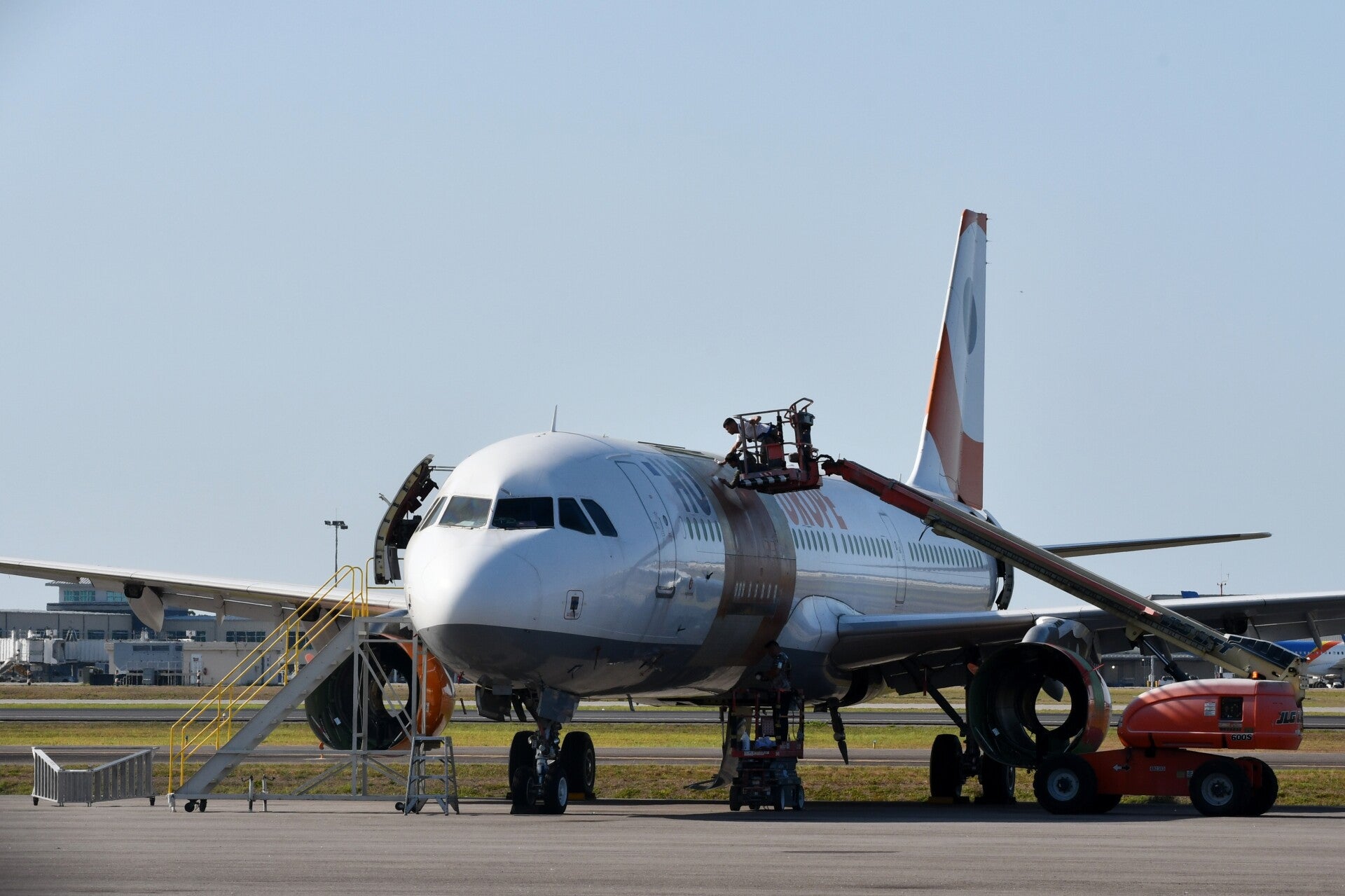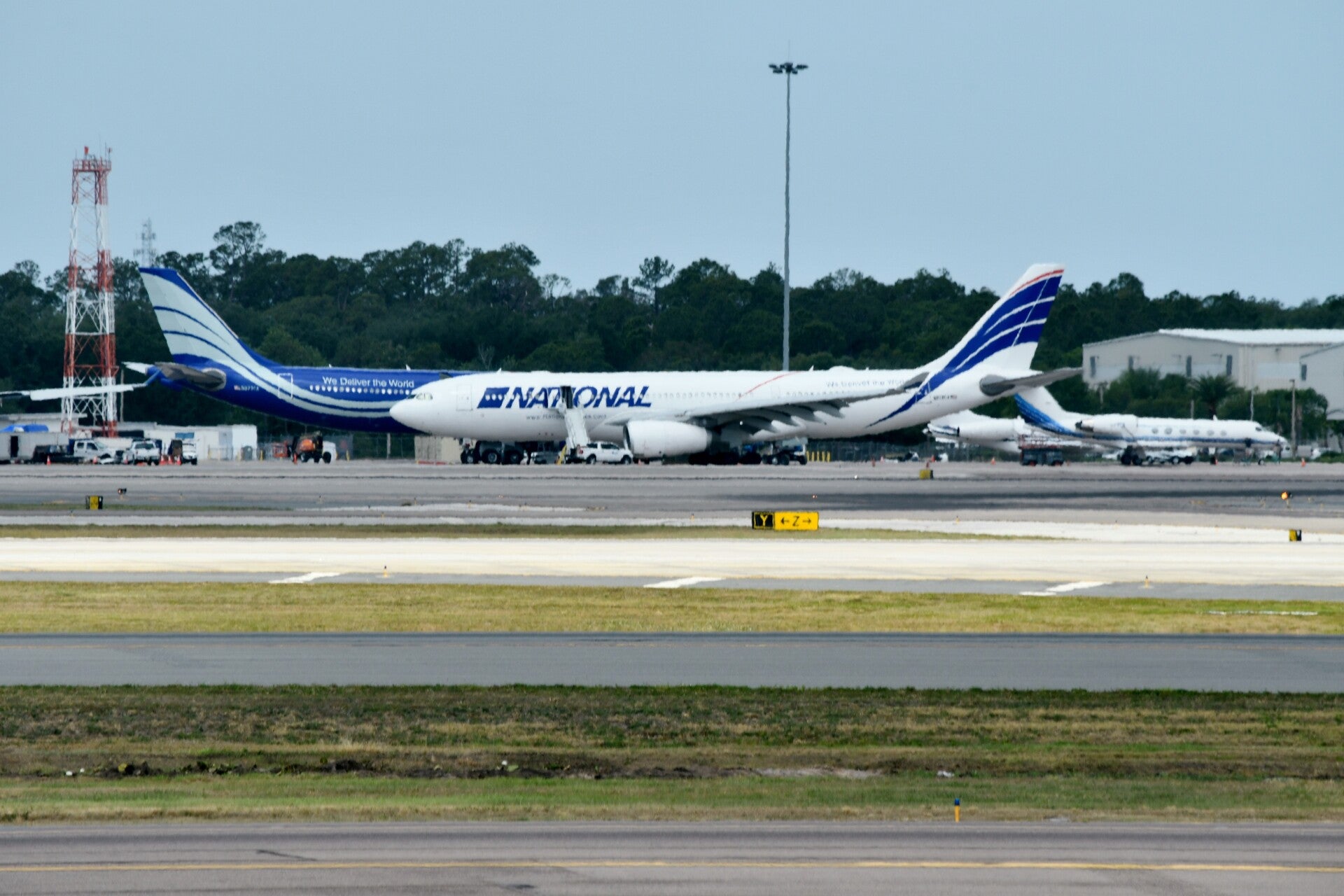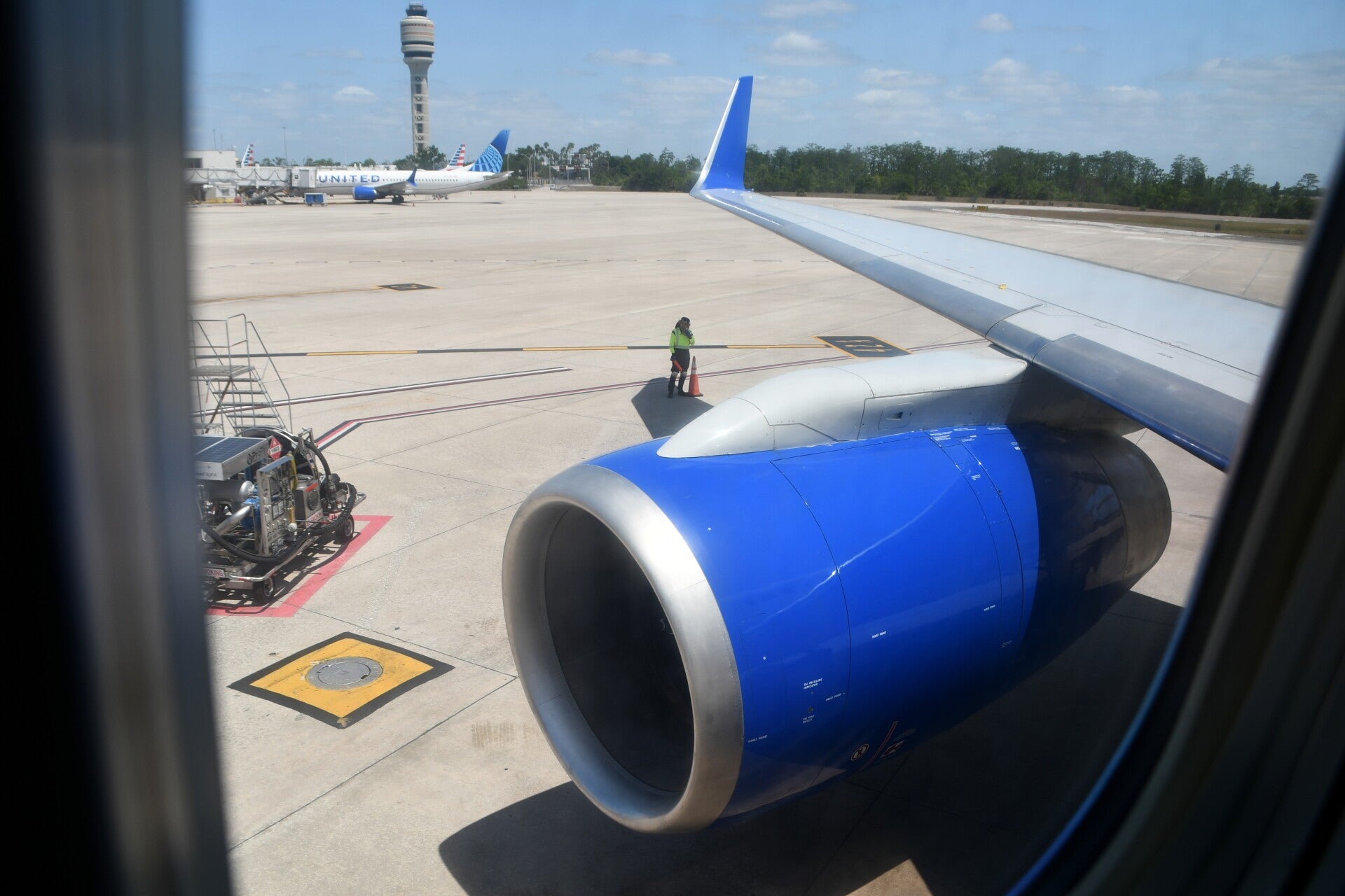 Orlando has four gate areas, all connected by one-way trams, so we make sure to hop on the right one. We’re early, as always, so we do what we do best: find a spot to go spotting. That’s not so easy here, though. The terminal is swarming with people, like an anthill in full operation. We eventually find a few window spots with views across the field, though heat haze makes photography tricky. The unexpected star of the lineup is a Boeing 737-200 that looks remarkably good!