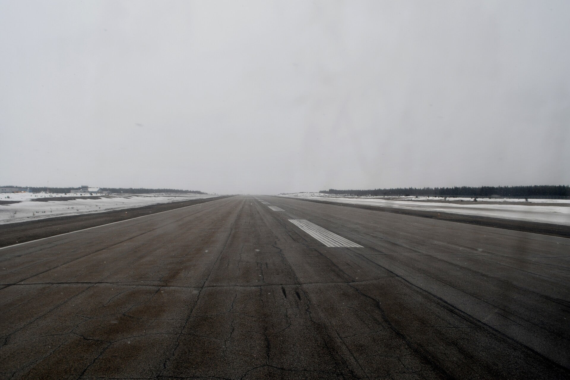 We roll to the end of the runway, then turn around to backtrack to our stand. The view during the turn is surreal: a frozen gravel strip dusted with powdery snow, stretching across this remote northern landscape. It’s almost hard to believe we’re actually here.