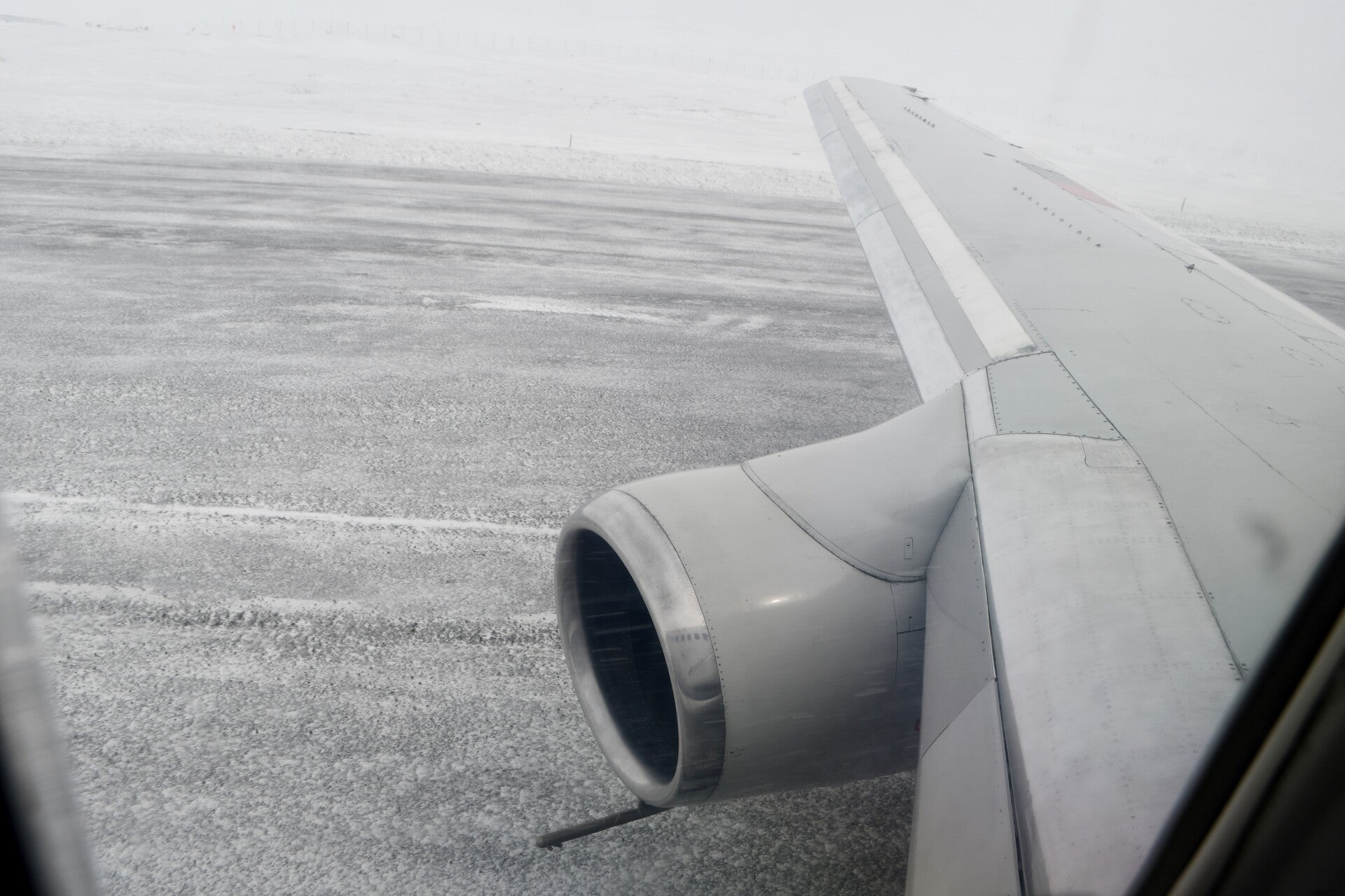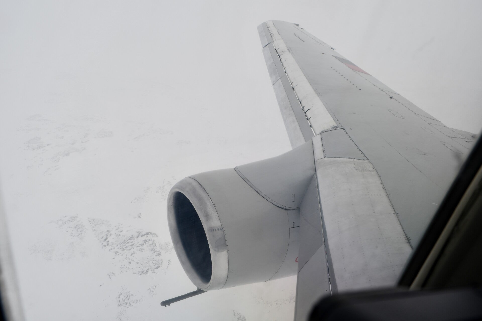 Lewis, being a private pilot himself, eagerly claims his spot in the flight deck and dives into conversation with the pilots. That leaves the three of us, Rudi, Marieke, and me, to hang back and enjoy more time chatting with Nesrine and Farrah. While we’re staring out of the windows, we notice something curious: the engines are being covered up. The crew explains it’s done to protect them from snow or debris, but also to conserve heat inside the engines. Pretty clever for such a rugged environment!