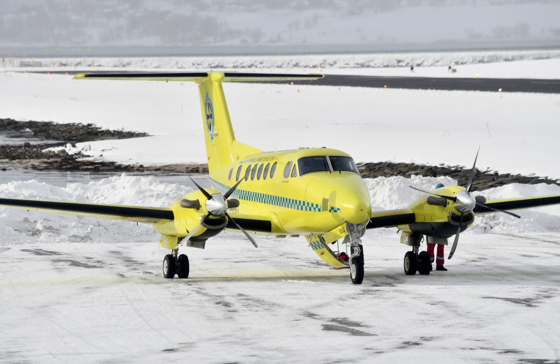 We’ve just missed the landing of a bright yellow Beechcraft King Air used as an air ambulance here in Norway, but we do catch it taxiing in. Thankfully, we don’t have to wait long for our next ride to arrive. Although we were hoping for the rare -200, today’s flight is operated by Widerøe’s oldest child: the 34-year-old DHC-8-100, LN-WIR. She still wears the old livery, which we actually prefer over the new one. The little Dash turns around and taxis onto the ramp, where, once again, only two passengers disembark.